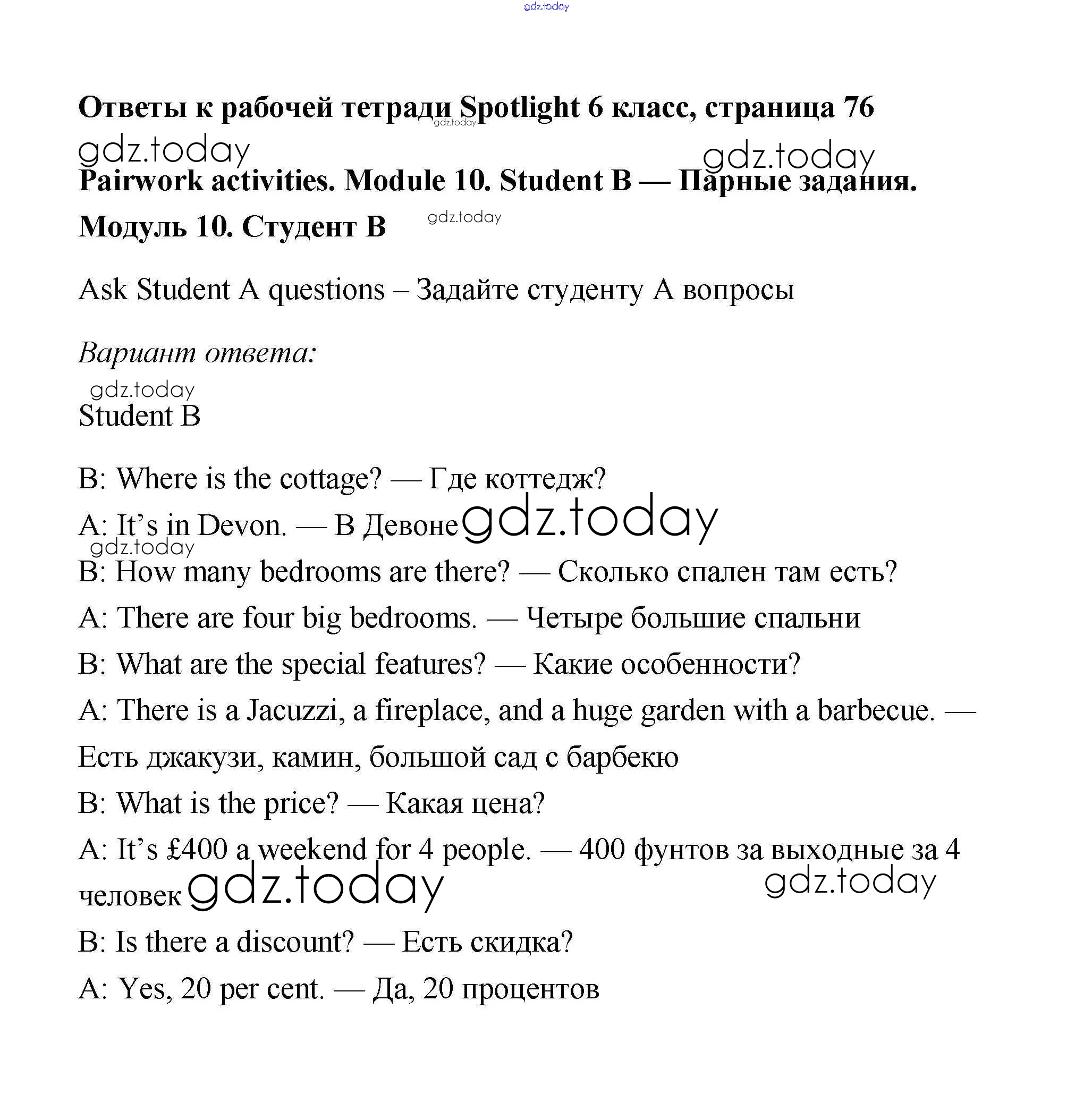 Ответы к Страницы (решение) 76 Рабочей тетради по Английскому языку для 6 класса Эванс, Дули Просвещение Spotlight 2011