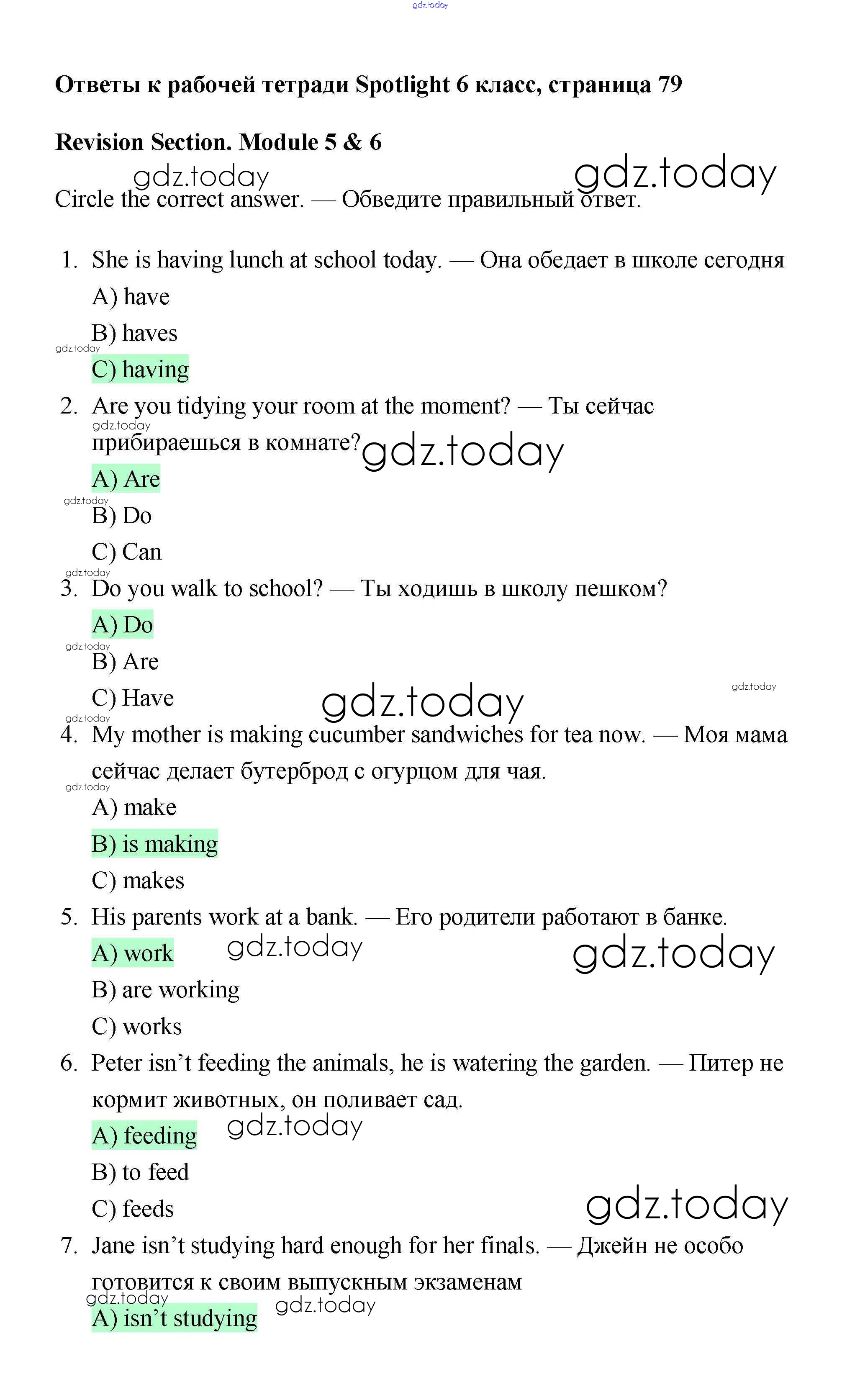 Ответы к Страницы (решение) 79 Рабочей тетради по Английскому языку для 6 класса Эванс, Дули Просвещение Spotlight 2011