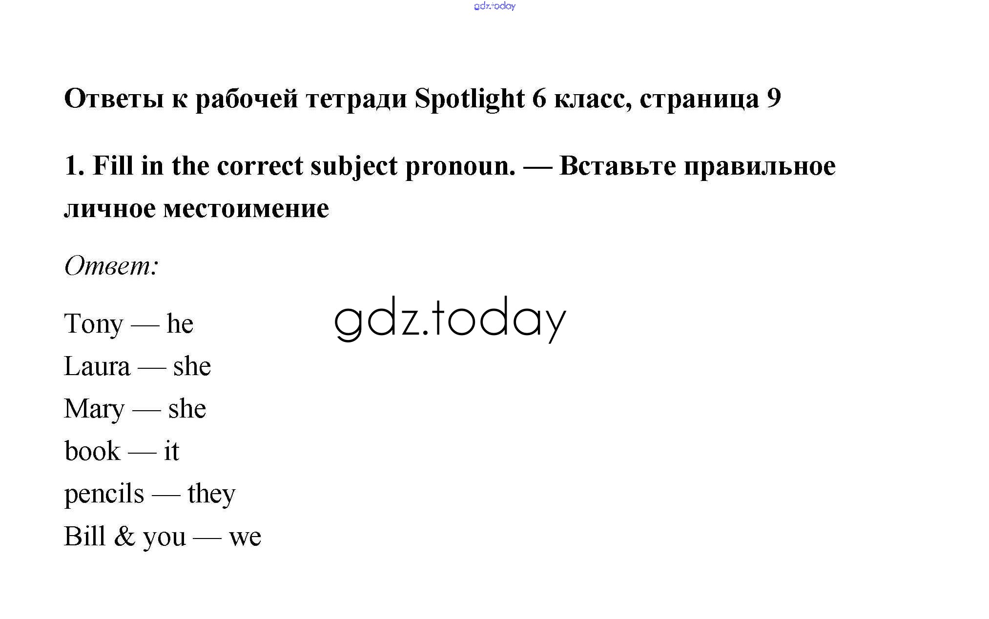 На страницах сайта gdz.today вы найдете учебный и вспомогательный материал, направленный на улучшения знаний школьной программы. ГДЗ - онлайн мир знаний Страницы (решение) 9 Рабочей тетради по Английскому языку для 6 класса Эванс, Дули Просвещение Spotlight 2011