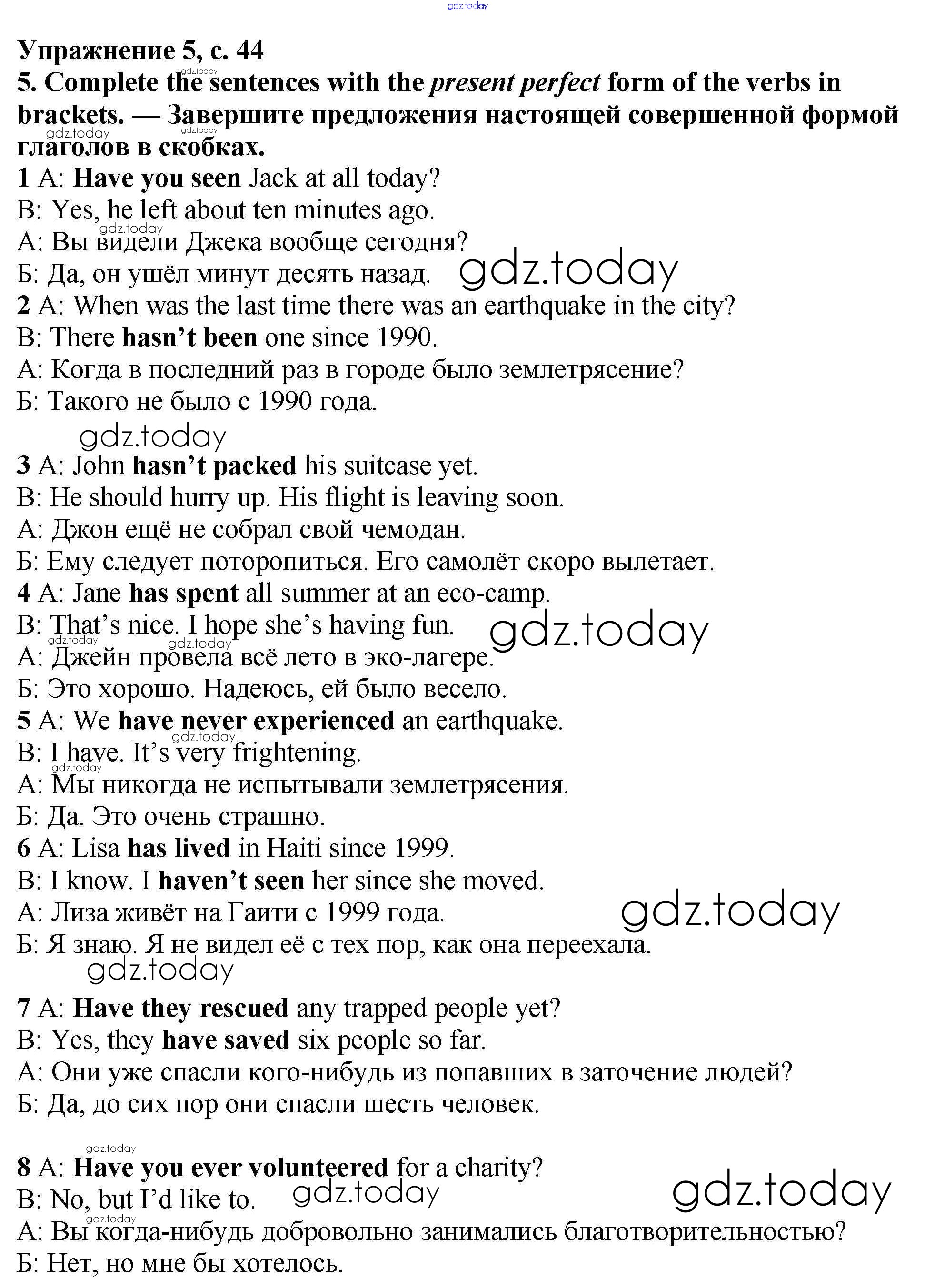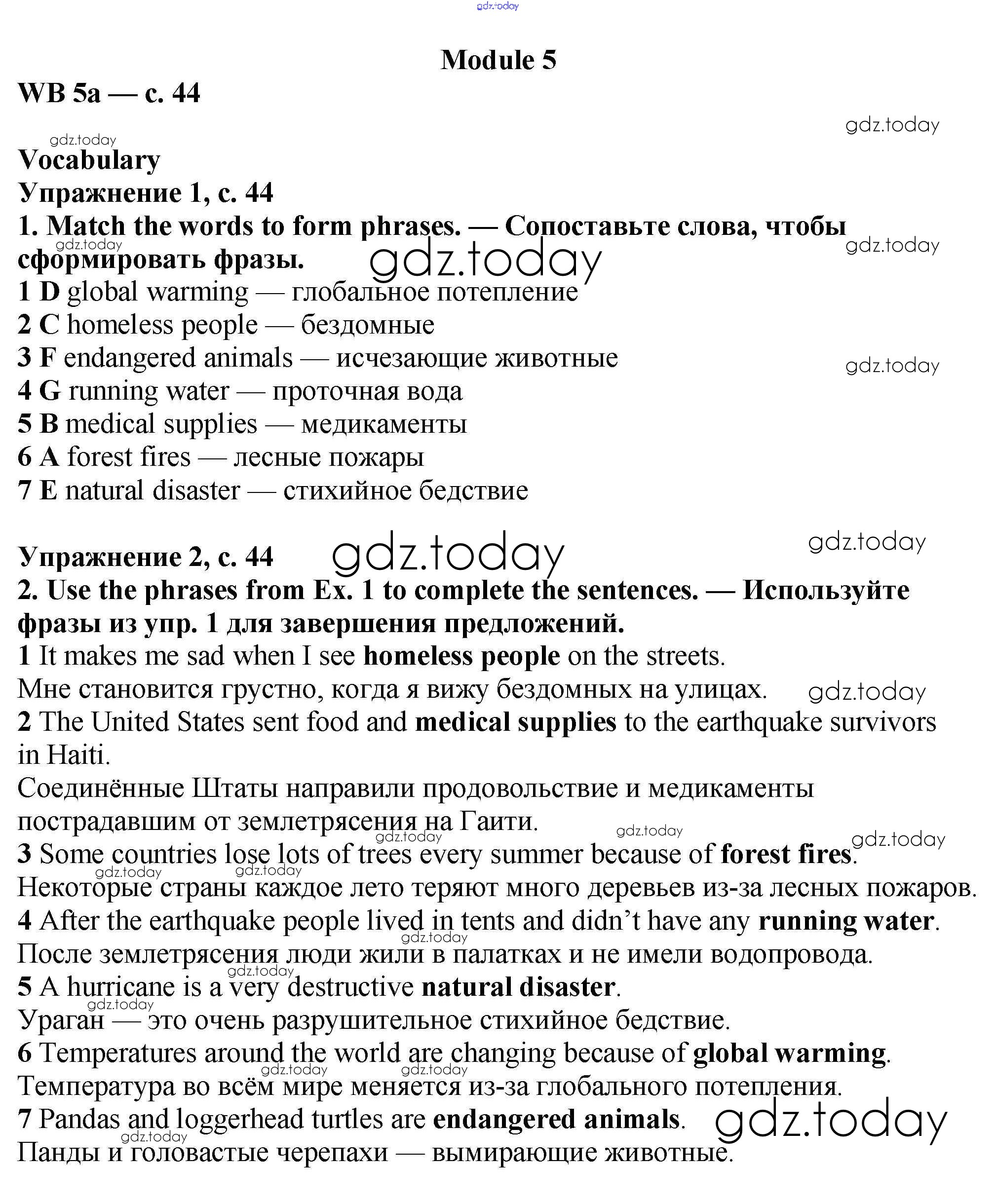 Ответы к Страницы (решение) 44 Рабочей тетради по Английскому языку для 6 класса Мильруд, Эванс Углубленный уровень Просвещение Starlight 2020