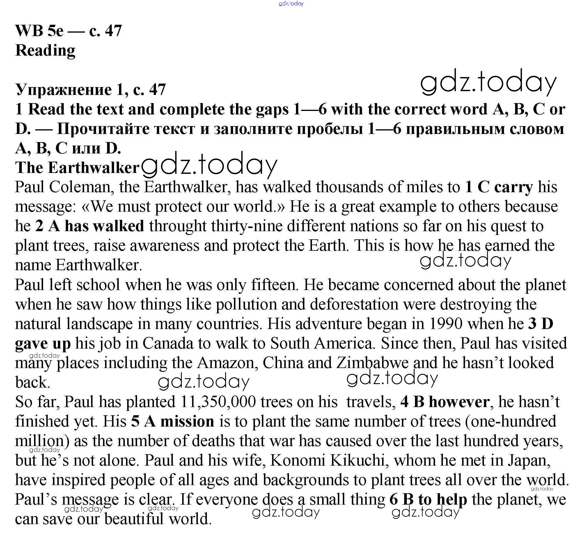 Ответы к Страницы (решение) 47 Рабочей тетради по Английскому языку для 6 класса Мильруд, Эванс Углубленный уровень Просвещение Starlight 2020
