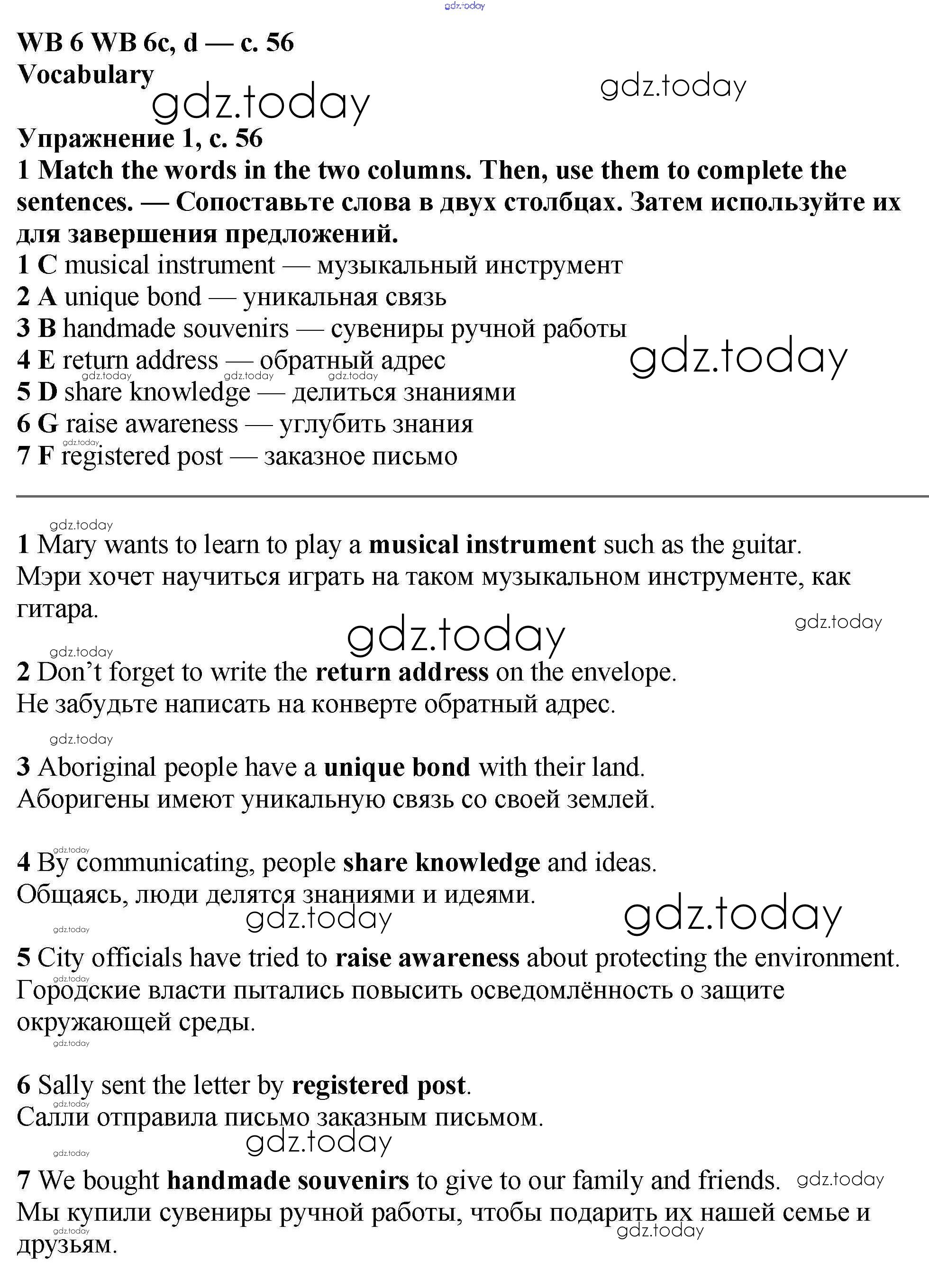Ответы к Страницы (решение) 56 Рабочей тетради по Английскому языку для 6 класса Мильруд, Эванс Углубленный уровень Просвещение Starlight 2020