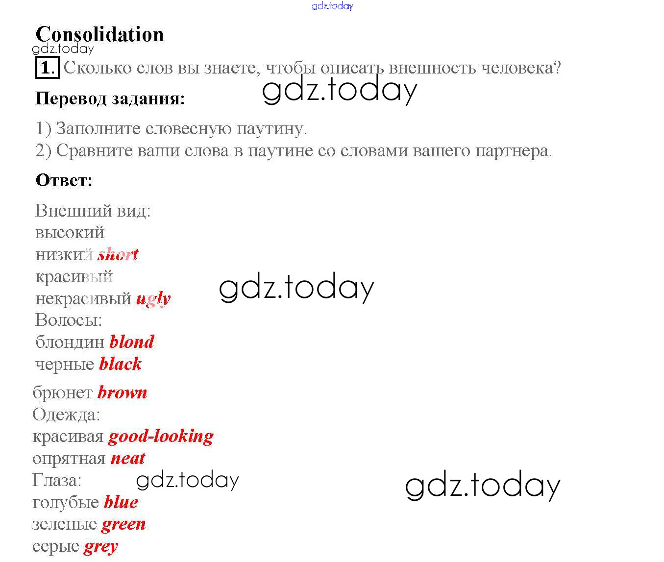 На страницах сайта gdz.today вы найдете учебный и вспомогательный материал, направленный на улучшения знаний школьной программы. ГДЗ - онлайн мир знаний Consolidation Решение к Unit 1 8 Рабочей тетради по Английскому языку для 6 класса Кузовлев, Лапа Просвещение 2015