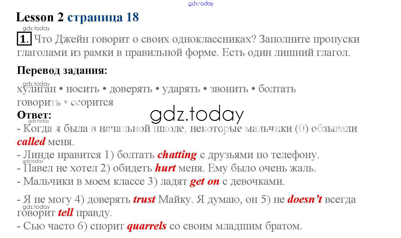 На страницах сайта gdz.today вы найдете учебный и вспомогательный материал, направленный на улучшения знаний школьной программы. ГДЗ - онлайн мир знаний Lesson 2 Решение к Unit 2 18 Рабочей тетради по Английскому языку для 6 класса Кузовлев, Лапа Просвещение 2015