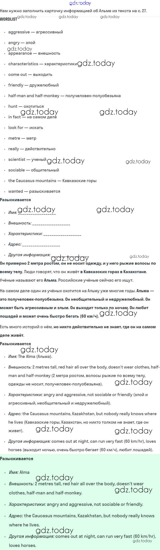 На страницах сайта gdz.today вы найдете учебный и вспомогательный материал, направленный на улучшения знаний школьной программы. ГДЗ - онлайн мир знаний Lesson 8-9 Решение к Unit 2 27 Рабочей тетради по Английскому языку для 6 класса Кузовлев, Лапа Просвещение 2015