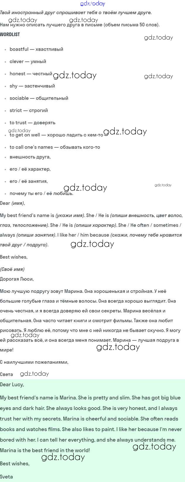 На страницах сайта gdz.today вы найдете учебный и вспомогательный материал, направленный на улучшения знаний школьной программы. ГДЗ - онлайн мир знаний Lesson 8-9 Решение к Unit 2 29 Рабочей тетради по Английскому языку для 6 класса Кузовлев, Лапа Просвещение 2015