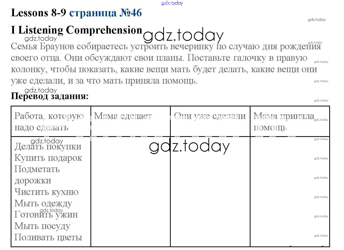 На страницах сайта gdz.today вы найдете учебный и вспомогательный материал, направленный на улучшения знаний школьной программы. ГДЗ - онлайн мир знаний Lesson 8-9 Решение к Unit 3 46 Рабочей тетради по Английскому языку для 6 класса Кузовлев, Лапа Просвещение 2015