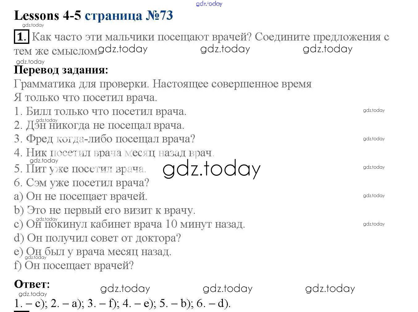 На страницах сайта gdz.today вы найдете учебный и вспомогательный материал, направленный на улучшения знаний школьной программы. ГДЗ - онлайн мир знаний Lesson 4-5 Решение к Unit 5 73 Рабочей тетради по Английскому языку для 6 класса Кузовлев, Лапа Просвещение 2015