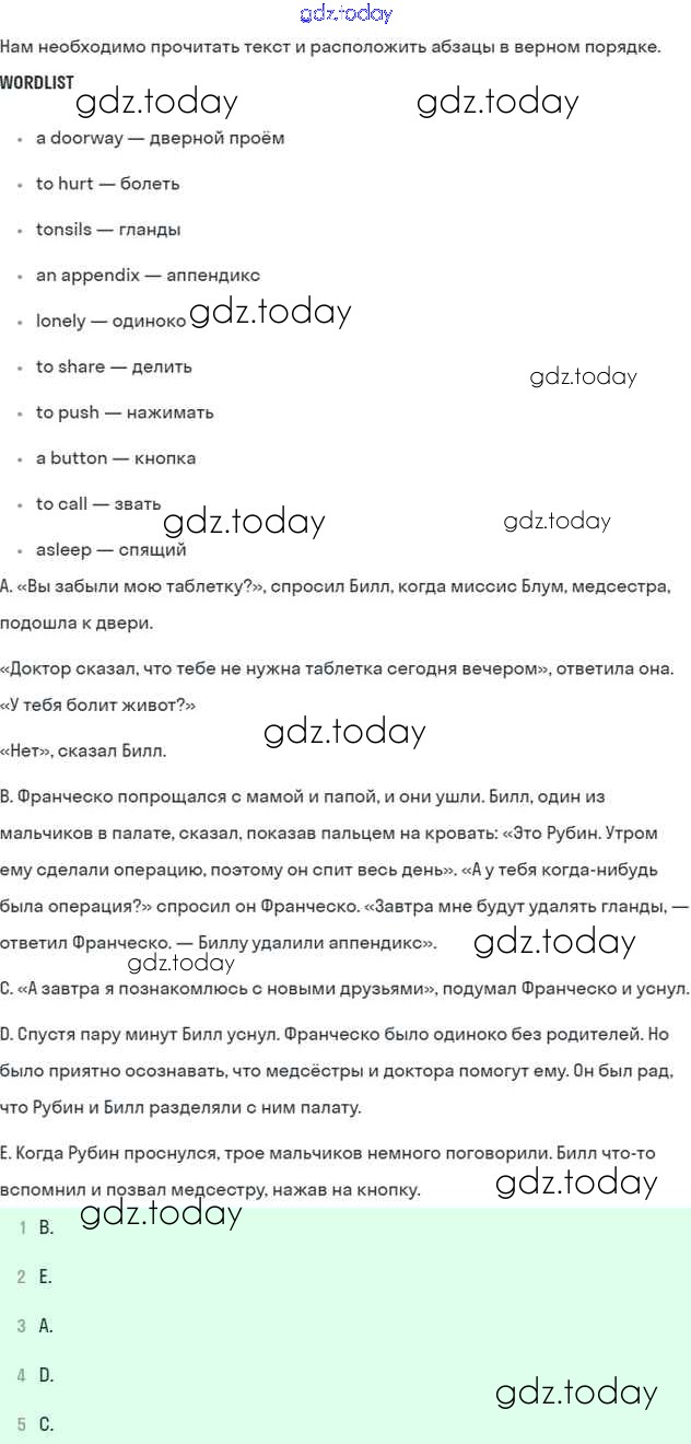 На страницах сайта gdz.today вы найдете учебный и вспомогательный материал, направленный на улучшения знаний школьной программы. ГДЗ - онлайн мир знаний Lesson 9-10 Решение к Unit 5 82 Рабочей тетради по Английскому языку для 6 класса Кузовлев, Лапа Просвещение 2015