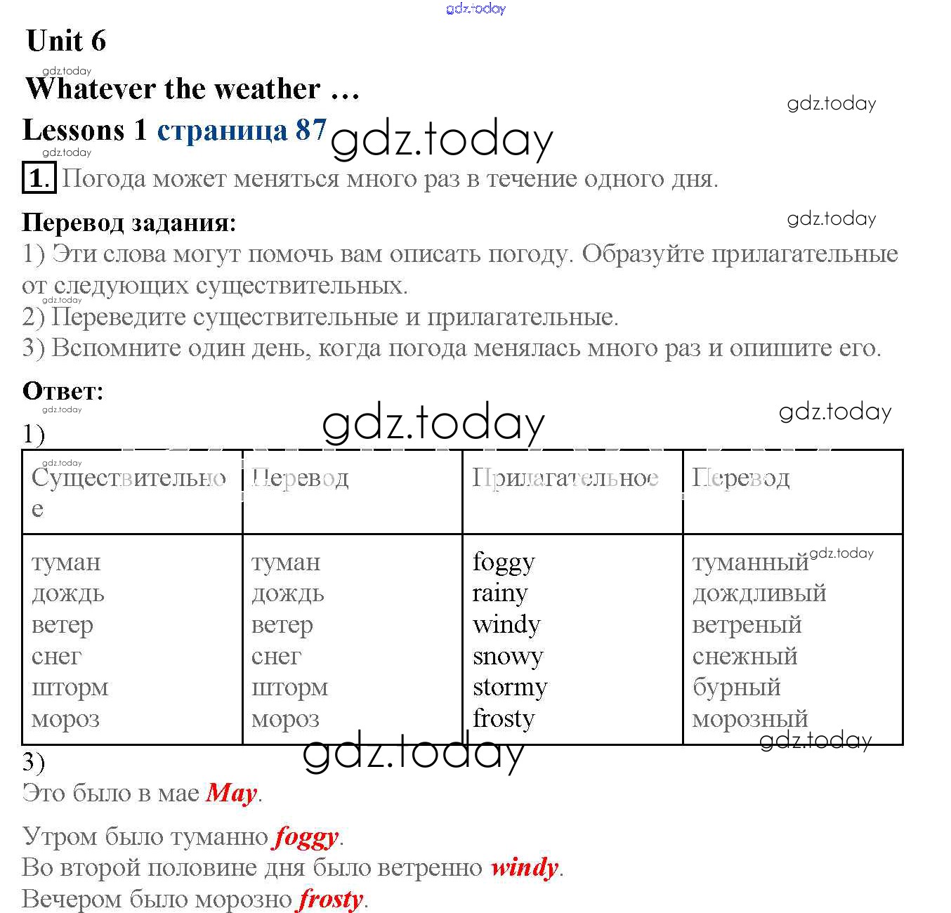 На страницах сайта gdz.today вы найдете учебный и вспомогательный материал, направленный на улучшения знаний школьной программы. ГДЗ - онлайн мир знаний Lesson 1 Решение к Unit 6 87 Рабочей тетради по Английскому языку для 6 класса Кузовлев, Лапа Просвещение 2015