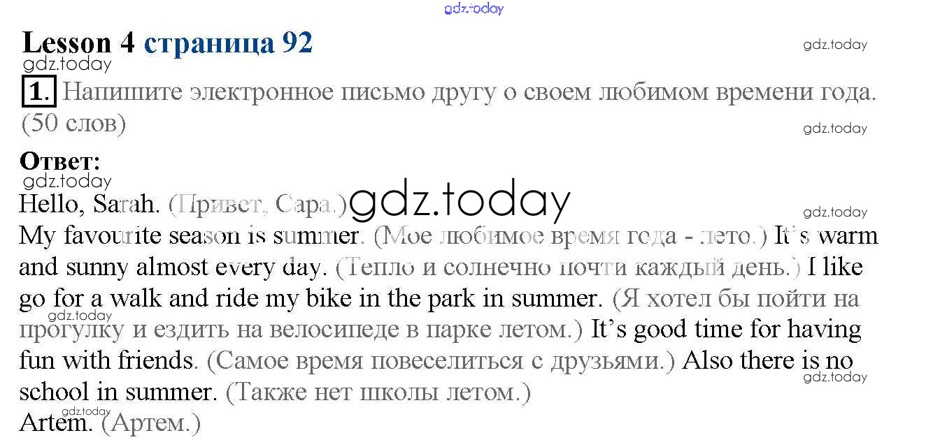 На страницах сайта gdz.today вы найдете учебный и вспомогательный материал, направленный на улучшения знаний школьной программы. ГДЗ - онлайн мир знаний Lesson 4 Решение к Unit 6 92 Рабочей тетради по Английскому языку для 6 класса Кузовлев, Лапа Просвещение 2015