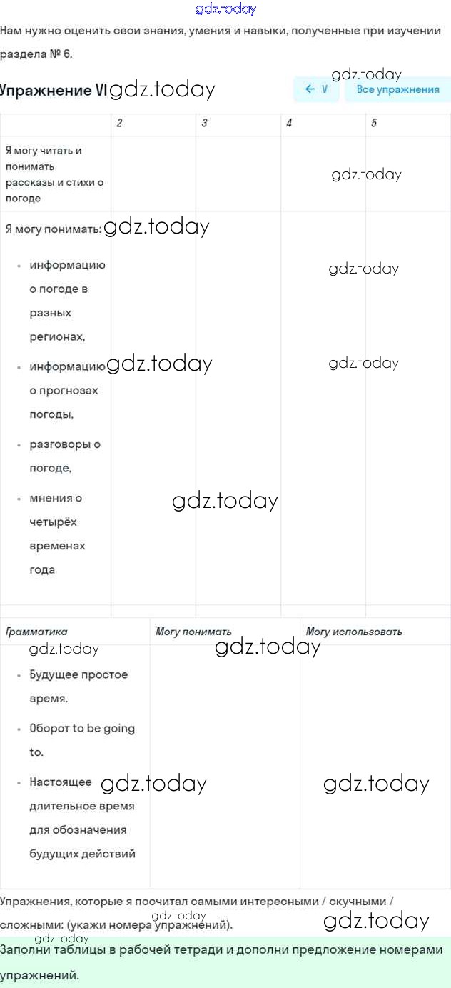 На страницах сайта gdz.today вы найдете учебный и вспомогательный материал, направленный на улучшения знаний школьной программы. ГДЗ - онлайн мир знаний Lesson 7 Решение к Unit 6 100 Рабочей тетради по Английскому языку для 6 класса Кузовлев, Лапа Просвещение 2015