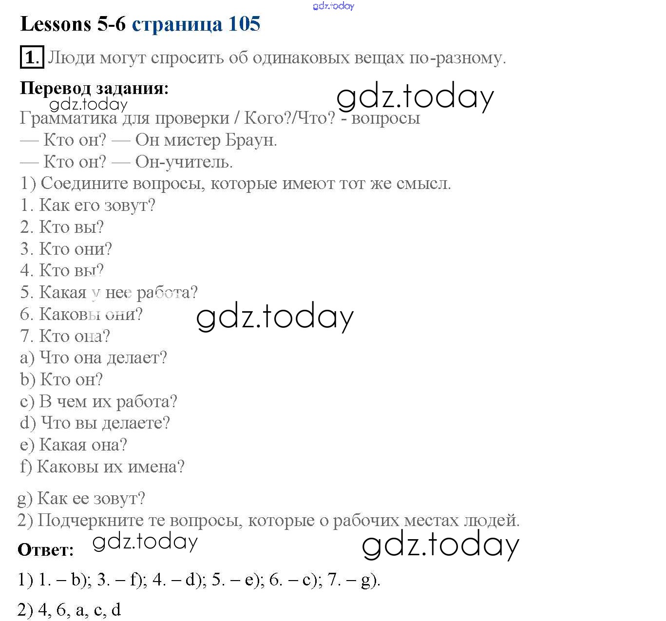 На страницах сайта gdz.today вы найдете учебный и вспомогательный материал, направленный на улучшения знаний школьной программы. ГДЗ - онлайн мир знаний Lesson 5-6 Решение к Unit 7 105 Рабочей тетради по Английскому языку для 6 класса Кузовлев, Лапа Просвещение 2015