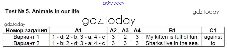 Ответы к Решение к тестам 5 Контрольно-измерительным материалам (КИМ) по Английскому языку для 6 класса Сухоросова ВАКО 2017