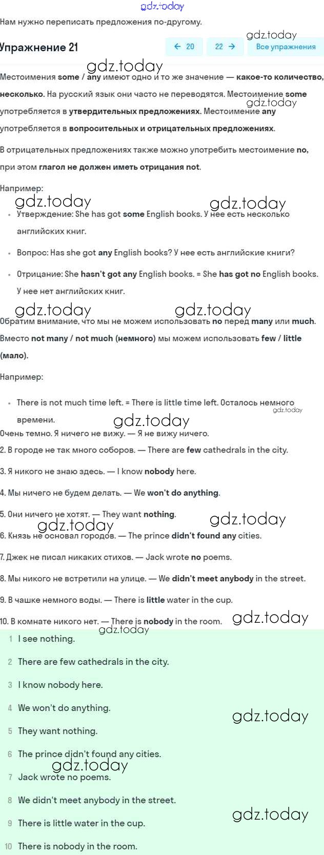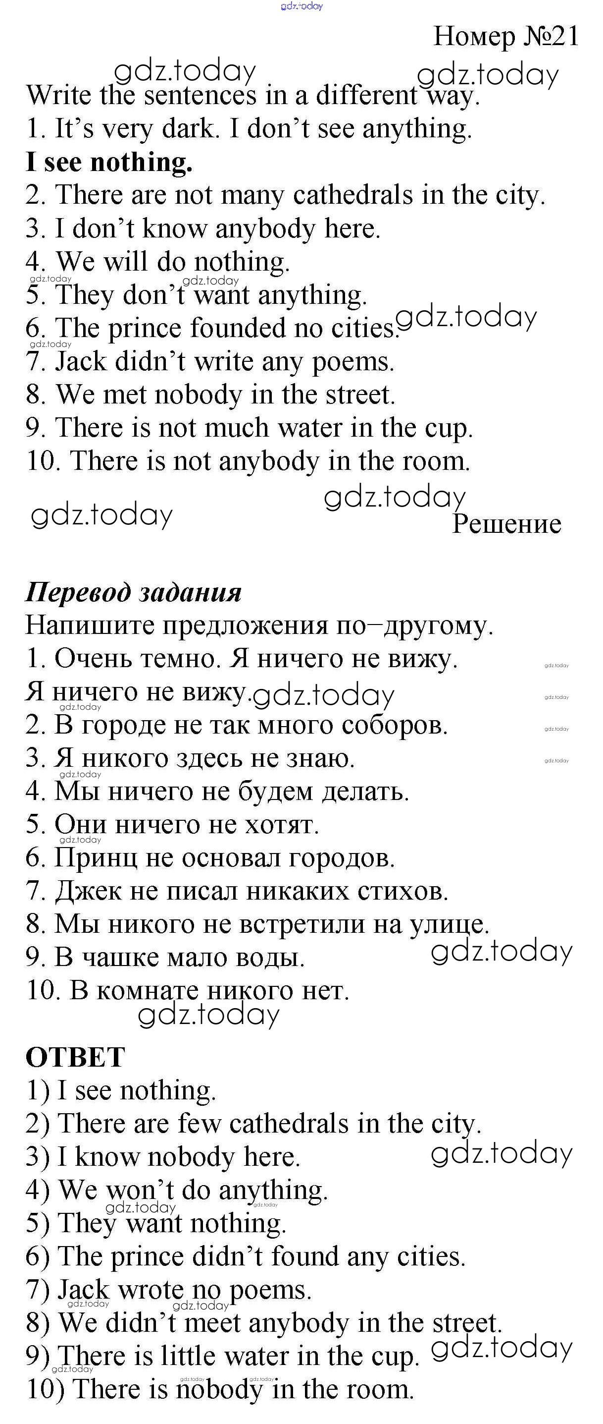 На страницах сайта gdz.today вы найдете учебный и вспомогательный материал, направленный на улучшения знаний школьной программы. ГДЗ - онлайн мир знаний Решение. Unit One 21 Рабочей тетради по Английскому языку для 6 класса Афанасьева, Михеева Дрофа Rainbow 2017