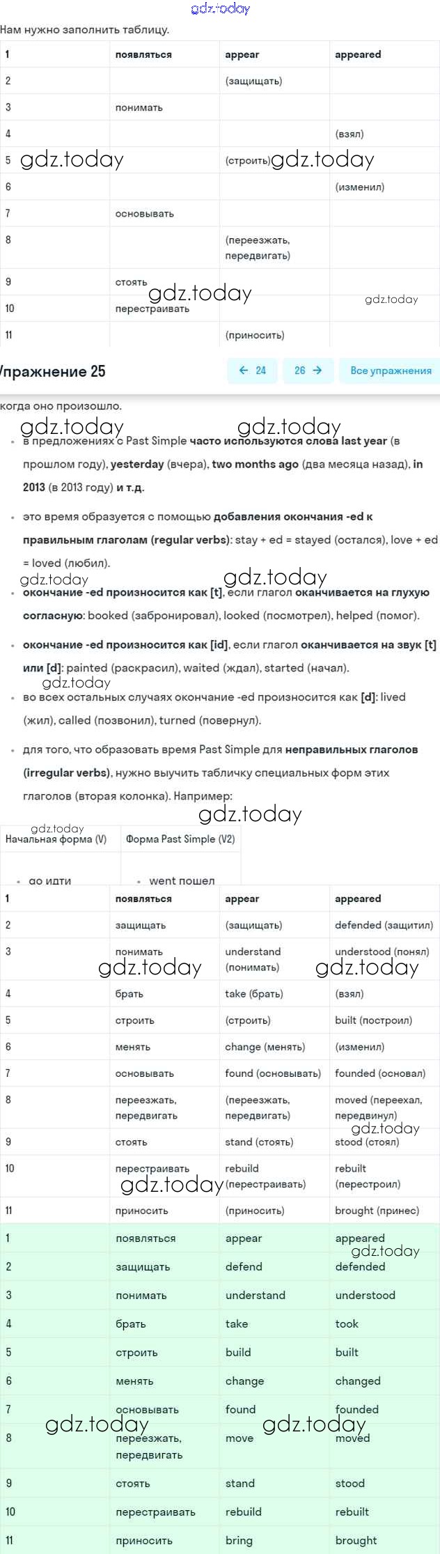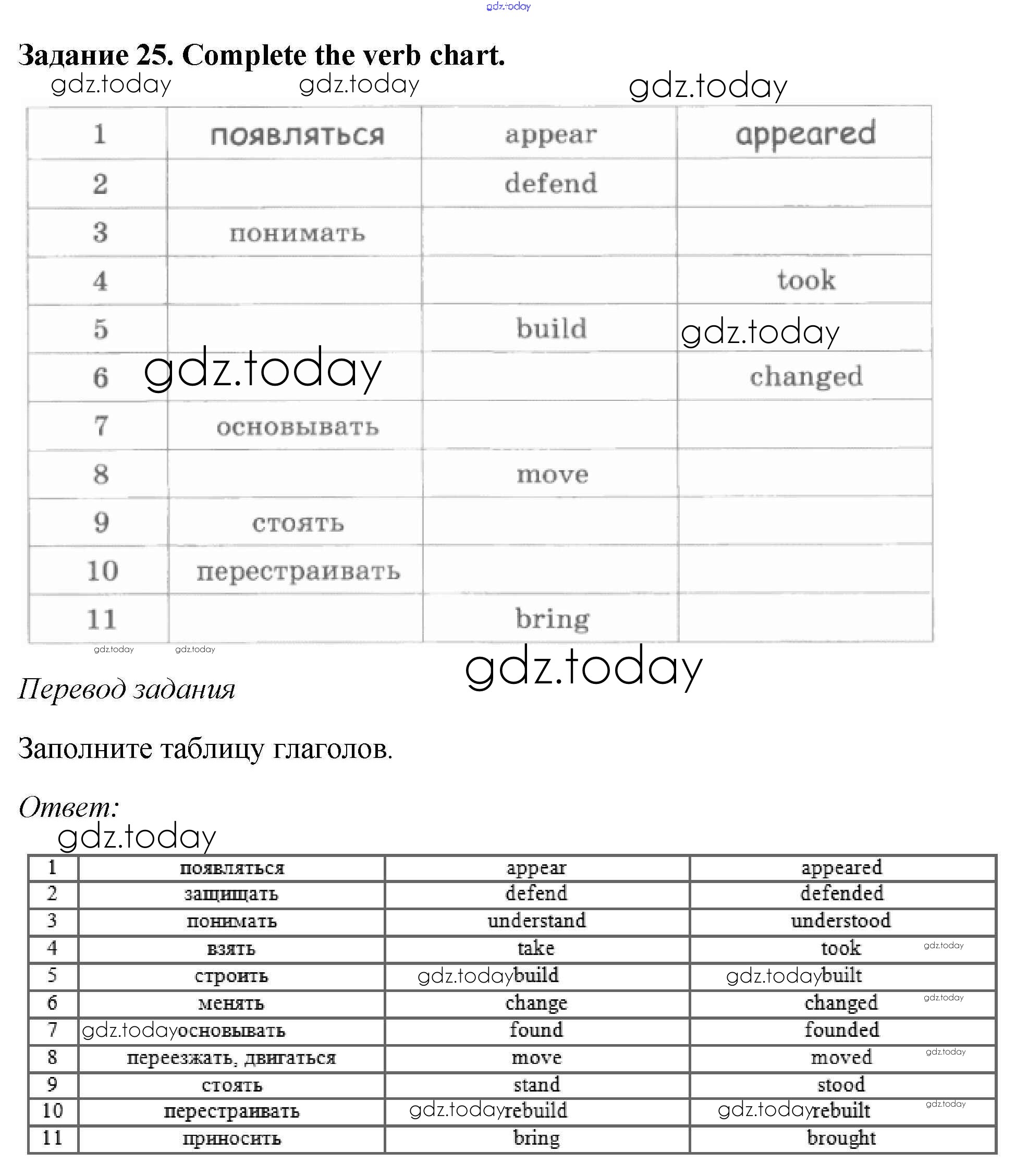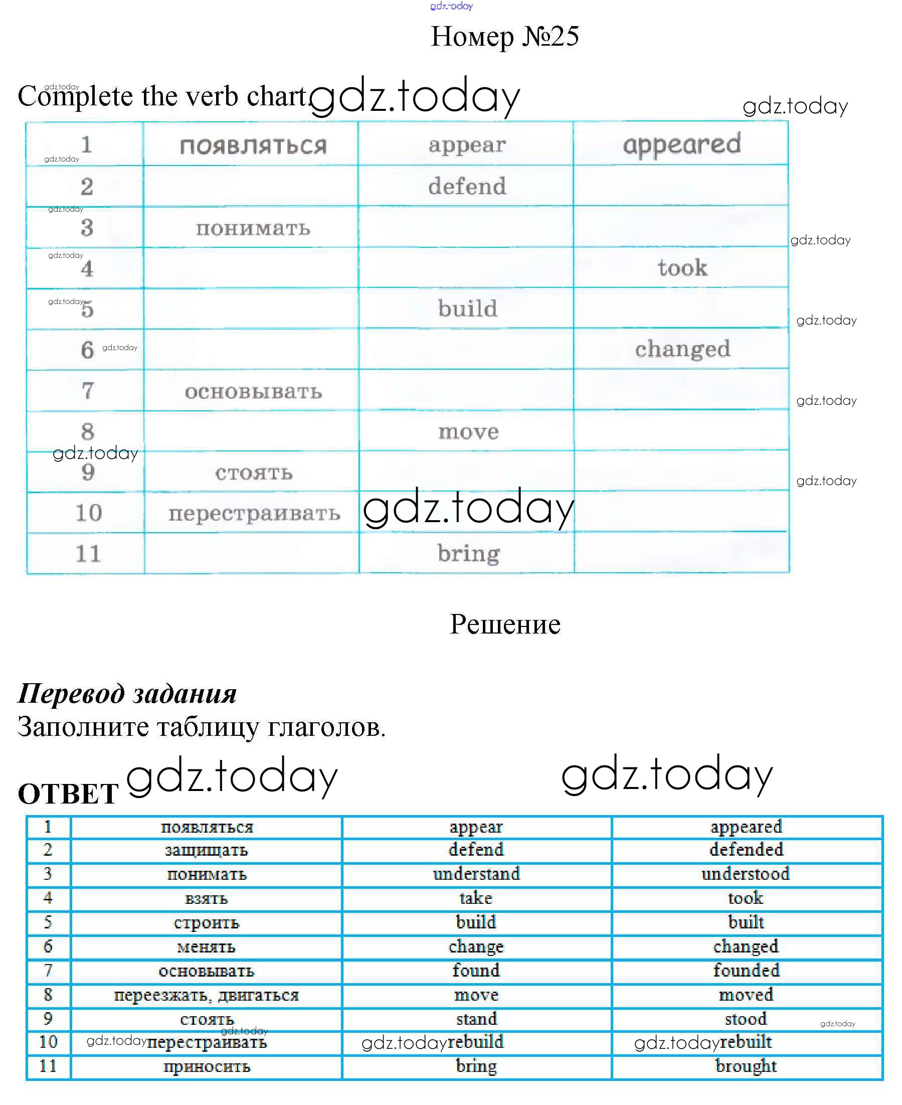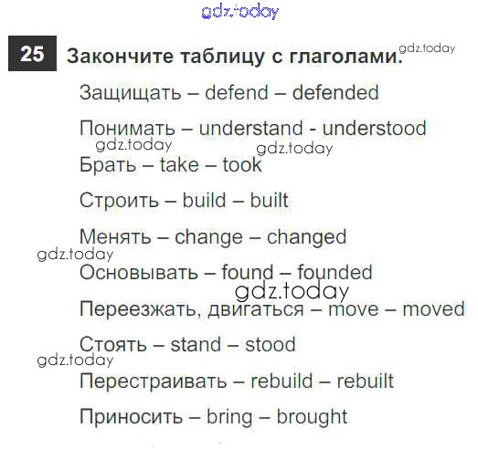На страницах сайта gdz.today вы найдете учебный и вспомогательный материал, направленный на улучшения знаний школьной программы. ГДЗ - онлайн мир знаний Решение. Unit One 25 Рабочей тетради по Английскому языку для 6 класса Афанасьева, Михеева Дрофа Rainbow 2017
