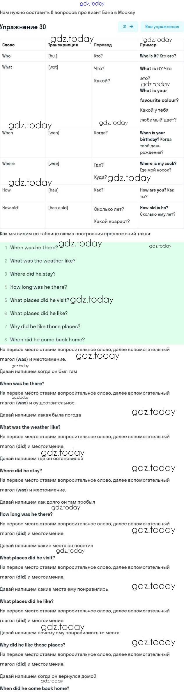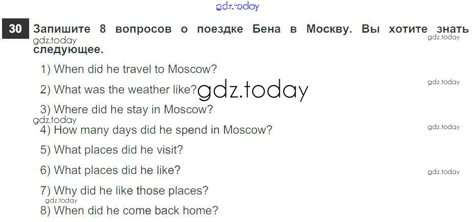 На страницах сайта gdz.today вы найдете учебный и вспомогательный материал, направленный на улучшения знаний школьной программы. ГДЗ - онлайн мир знаний Решение. Unit One 30 Рабочей тетради по Английскому языку для 6 класса Афанасьева, Михеева Дрофа Rainbow 2017