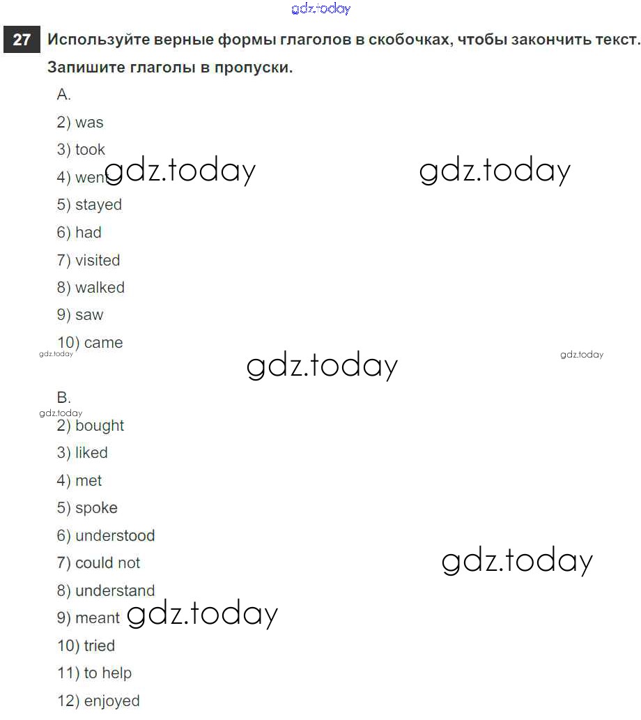 На страницах сайта gdz.today вы найдете учебный и вспомогательный материал, направленный на улучшения знаний школьной программы. ГДЗ - онлайн мир знаний Решение. Unit Two 27 Рабочей тетради по Английскому языку для 6 класса Афанасьева, Михеева Дрофа Rainbow 2017