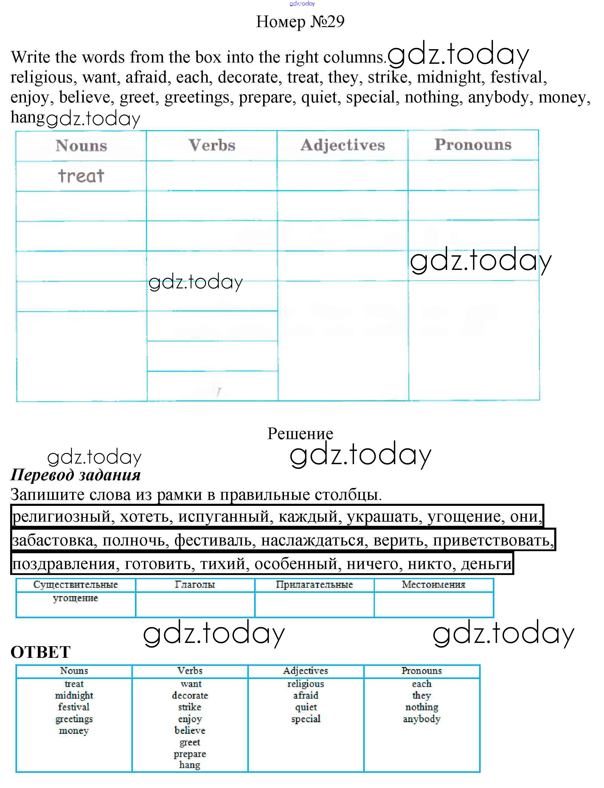 Ответы к Решение. Unit Three 29 Рабочей тетради по Английскому языку для 6 класса Афанасьева, Михеева Дрофа Rainbow 2017