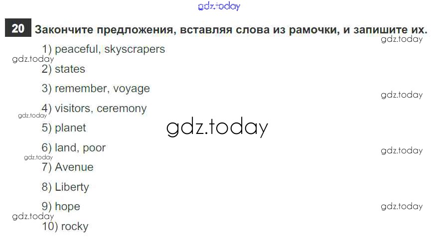 На страницах сайта gdz.today вы найдете учебный и вспомогательный материал, направленный на улучшения знаний школьной программы. ГДЗ - онлайн мир знаний Решение. Unit Four 20 Рабочей тетради по Английскому языку для 6 класса Афанасьева, Михеева Дрофа Rainbow 2017