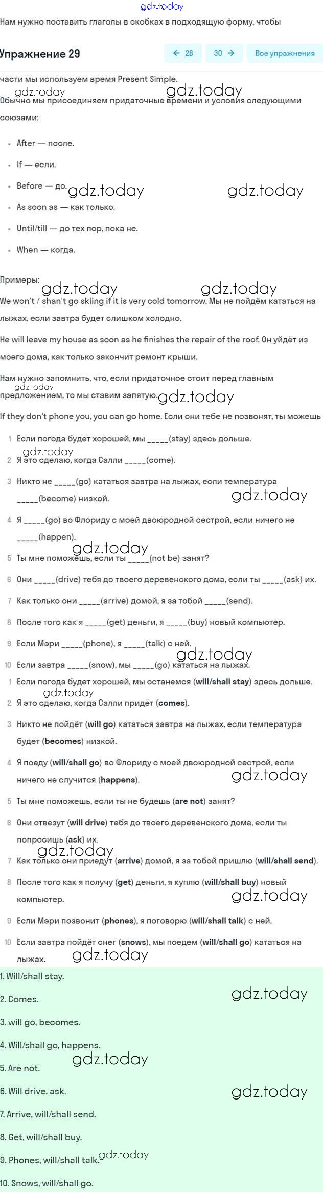 Ответы к Решение. Unit Four 29 Рабочей тетради по Английскому языку для 6 класса Афанасьева, Михеева Дрофа Rainbow 2017