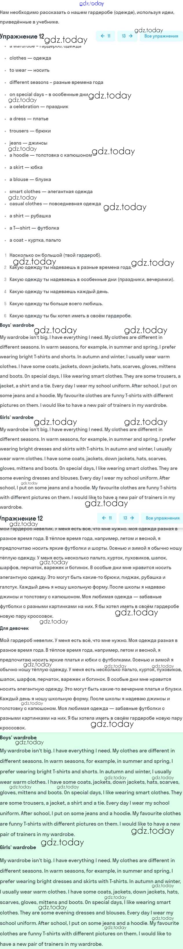 На страницах сайта gdz.today вы найдете учебный и вспомогательный материал, направленный на улучшения знаний школьной программы. ГДЗ - онлайн мир знаний Решение. Unit Five 12 Рабочей тетради по Английскому языку для 6 класса Афанасьева, Михеева Дрофа Rainbow 2017