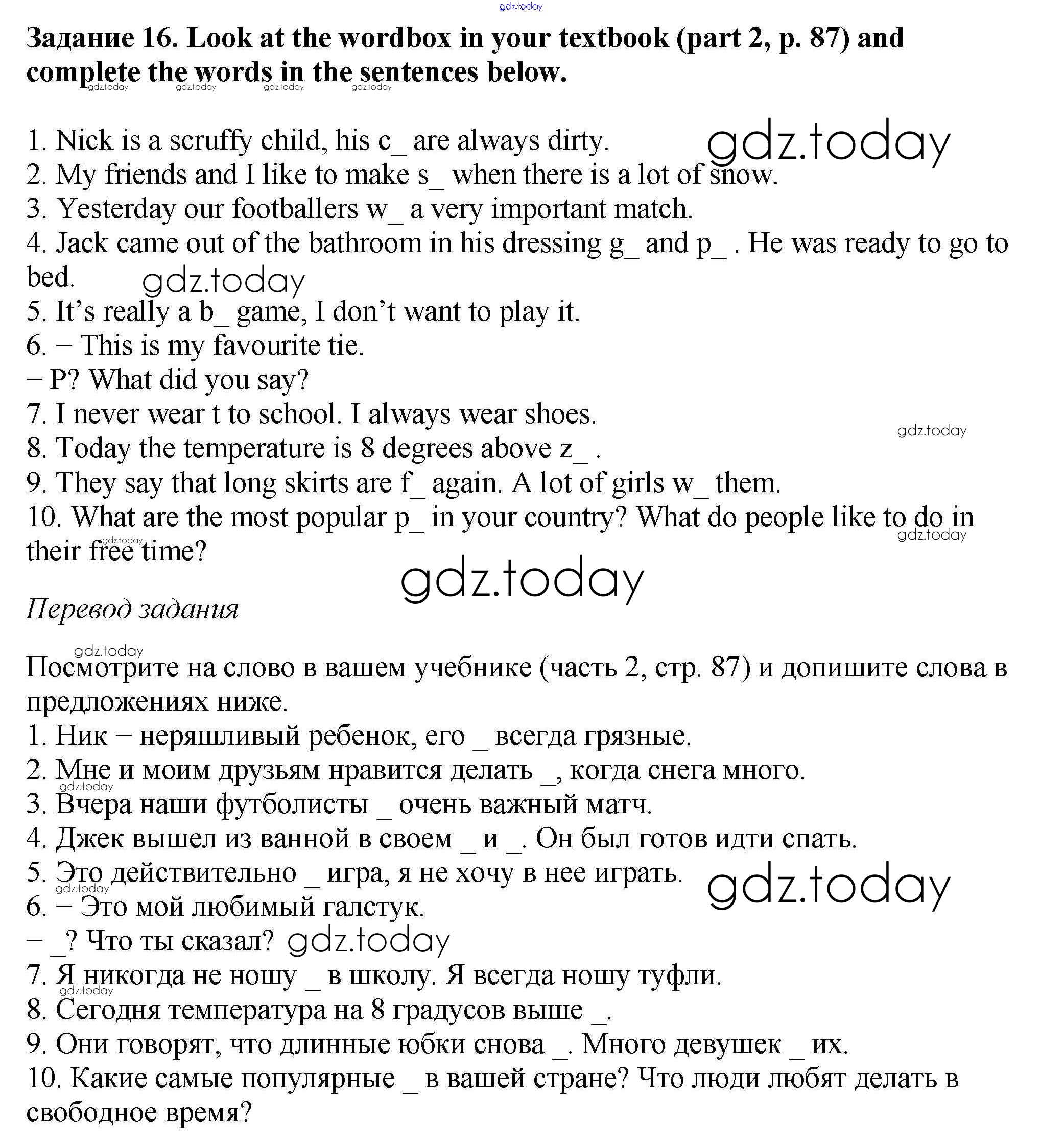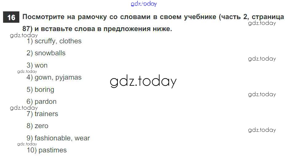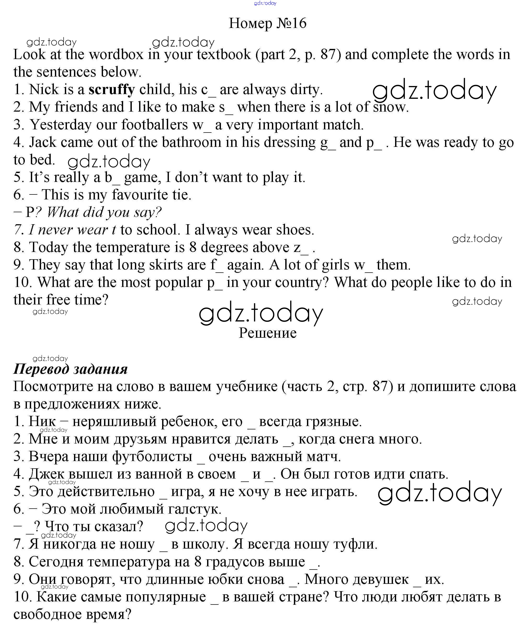 На страницах сайта gdz.today вы найдете учебный и вспомогательный материал, направленный на улучшения знаний школьной программы. ГДЗ - онлайн мир знаний Решение. Unit Five 16 Рабочей тетради по Английскому языку для 6 класса Афанасьева, Михеева Дрофа Rainbow 2017