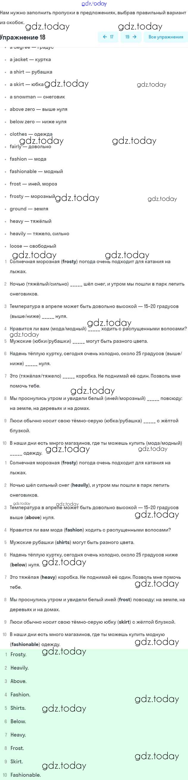 На страницах сайта gdz.today вы найдете учебный и вспомогательный материал, направленный на улучшения знаний школьной программы. ГДЗ - онлайн мир знаний Решение. Unit Five 18 Рабочей тетради по Английскому языку для 6 класса Афанасьева, Михеева Дрофа Rainbow 2017