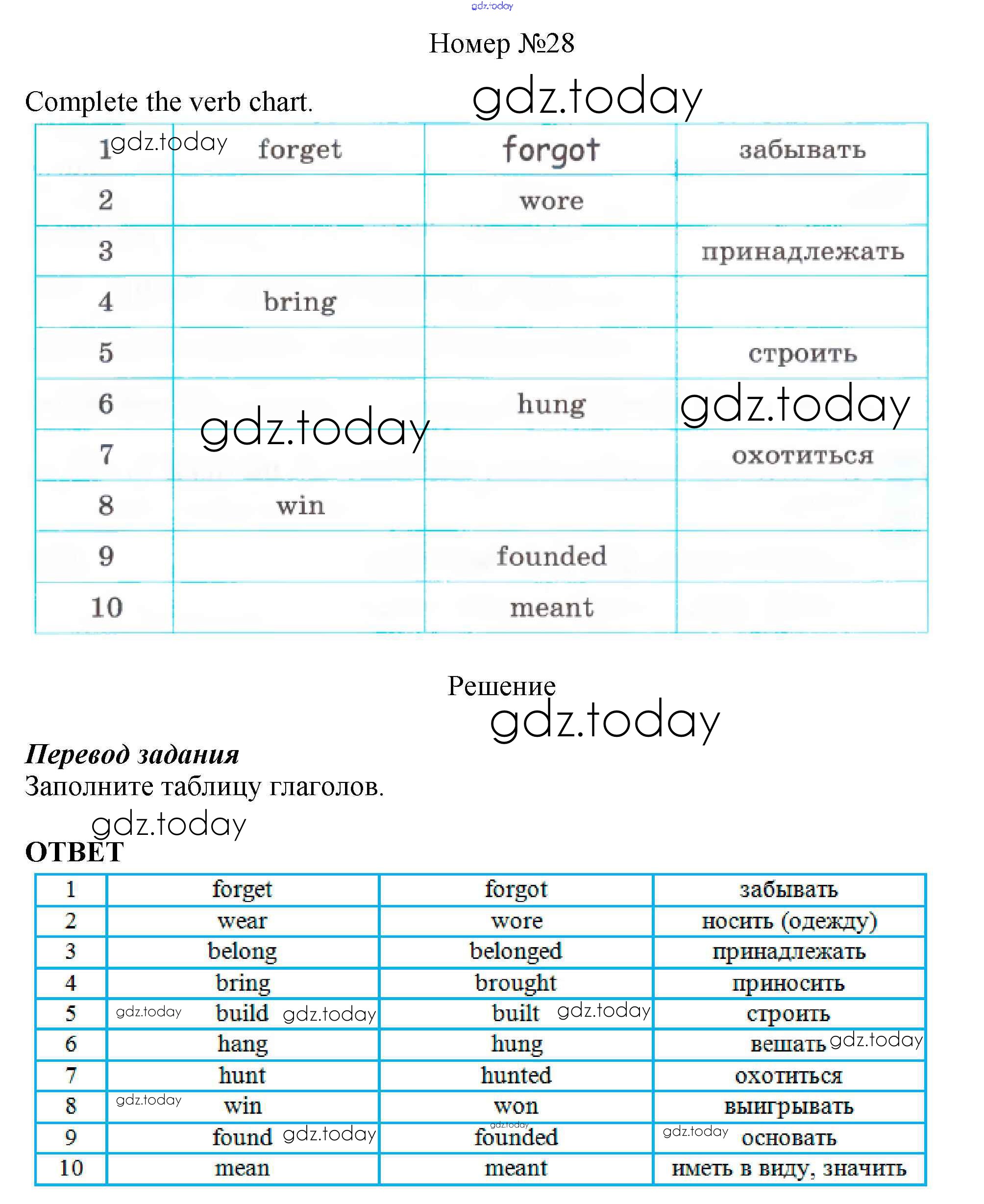 Ответы к Решение. Unit Five 28 Рабочей тетради по Английскому языку для 6 класса Афанасьева, Михеева Дрофа Rainbow 2017