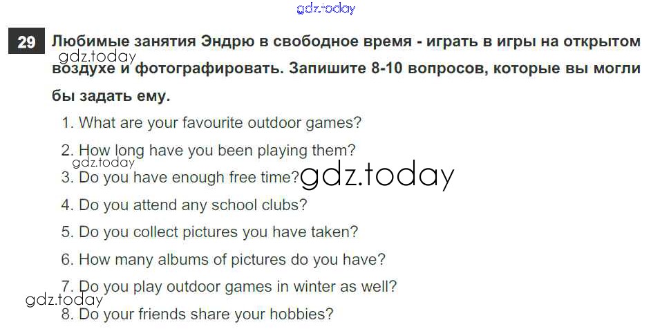 На страницах сайта gdz.today вы найдете учебный и вспомогательный материал, направленный на улучшения знаний школьной программы. ГДЗ - онлайн мир знаний Решение. Unit Five 29 Рабочей тетради по Английскому языку для 6 класса Афанасьева, Михеева Дрофа Rainbow 2017