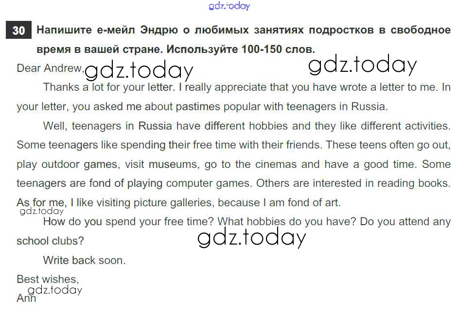 На страницах сайта gdz.today вы найдете учебный и вспомогательный материал, направленный на улучшения знаний школьной программы. ГДЗ - онлайн мир знаний Решение. Unit Five 30 Рабочей тетради по Английскому языку для 6 класса Афанасьева, Михеева Дрофа Rainbow 2017