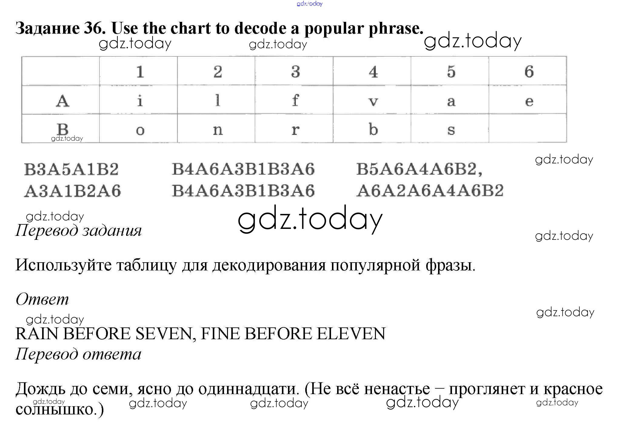 На страницах сайта gdz.today вы найдете учебный и вспомогательный материал, направленный на улучшения знаний школьной программы. ГДЗ - онлайн мир знаний Решение. Unit Five 36 Рабочей тетради по Английскому языку для 6 класса Афанасьева, Михеева Дрофа Rainbow 2017