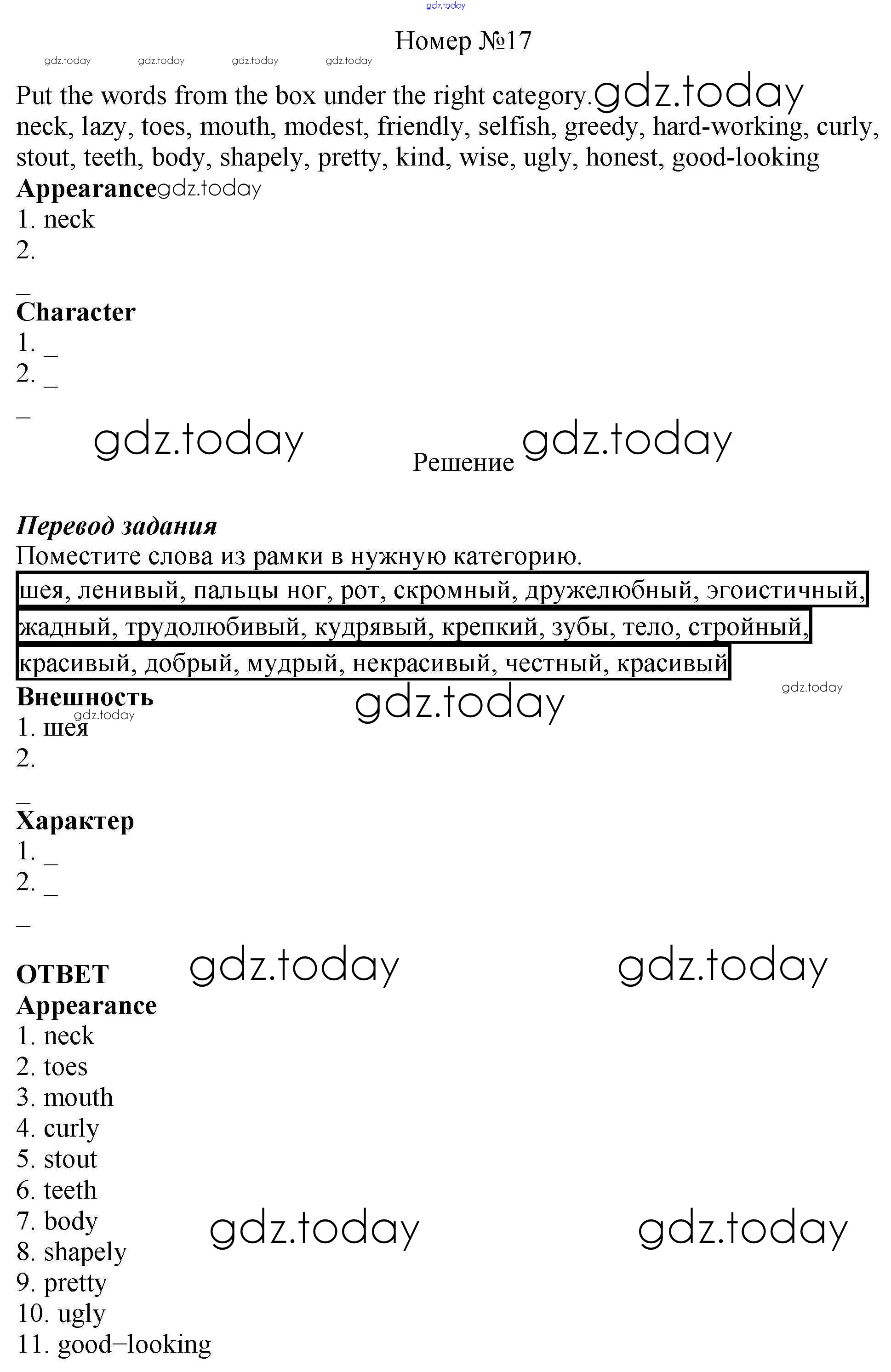Ответы к Решение. Unit Six 17 Рабочей тетради по Английскому языку для 6 класса Афанасьева, Михеева Дрофа Rainbow 2017