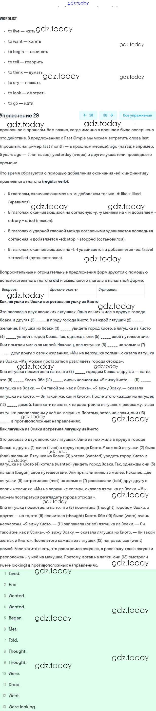 Ответы к Решение. Unit Six 29 Рабочей тетради по Английскому языку для 6 класса Афанасьева, Михеева Дрофа Rainbow 2017