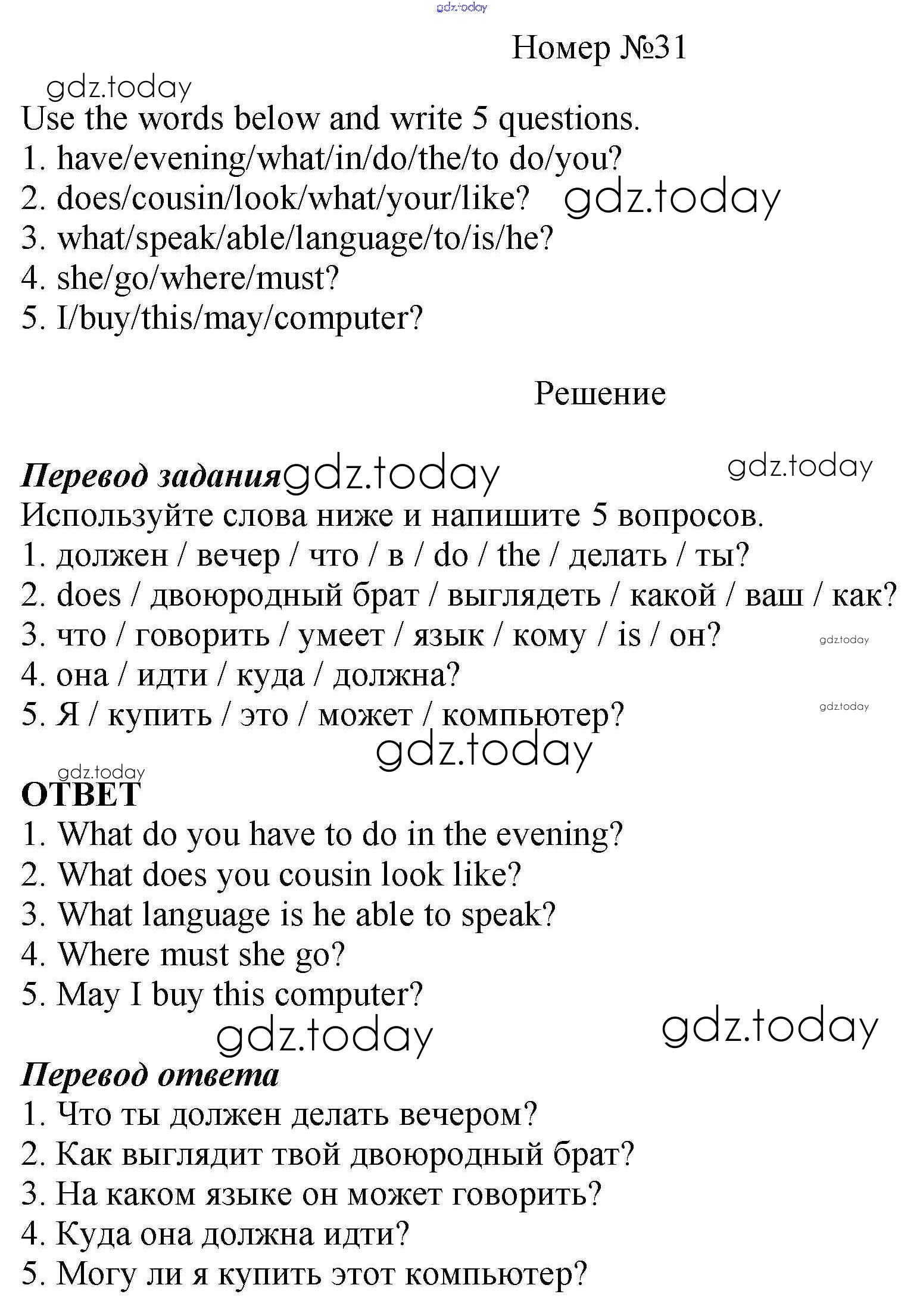 Ответы к Решение. Unit Six 31 Рабочей тетради по Английскому языку для 6 класса Афанасьева, Михеева Дрофа Rainbow 2017