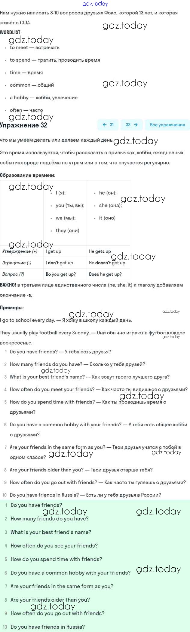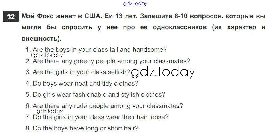 На страницах сайта gdz.today вы найдете учебный и вспомогательный материал, направленный на улучшения знаний школьной программы. ГДЗ - онлайн мир знаний Решение. Unit Six 32 Рабочей тетради по Английскому языку для 6 класса Афанасьева, Михеева Дрофа Rainbow 2017