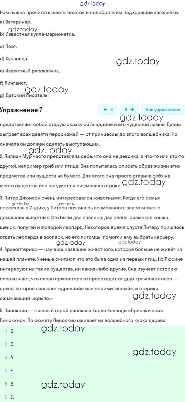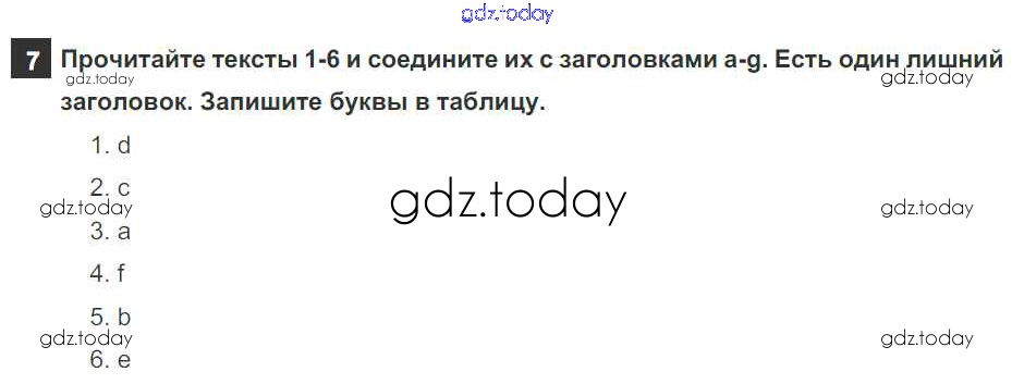 На страницах сайта gdz.today вы найдете учебный и вспомогательный материал, направленный на улучшения знаний школьной программы. ГДЗ - онлайн мир знаний Решение. Unit Six 7 Рабочей тетради по Английскому языку для 6 класса Афанасьева, Михеева Дрофа Rainbow 2017