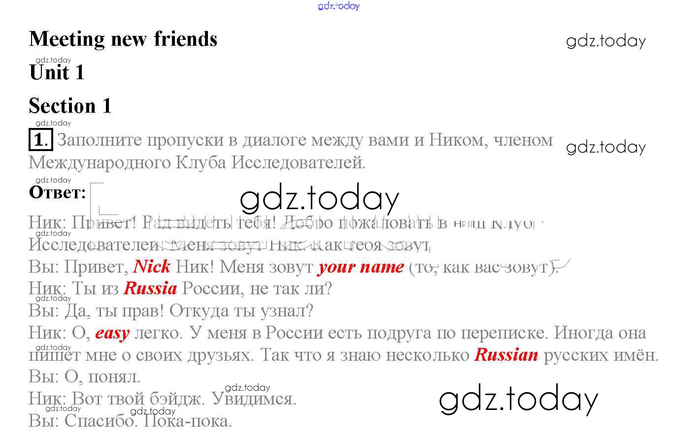 На страницах сайта gdz.today вы найдете учебный и вспомогательный материал, направленный на улучшения знаний школьной программы. ГДЗ - онлайн мир знаний Exercises Решение к Unit 1 1 Рабочей тетради по Английскому языку для 6 класса Биболетова, Денисенко Дрофа Enjoy English 2019