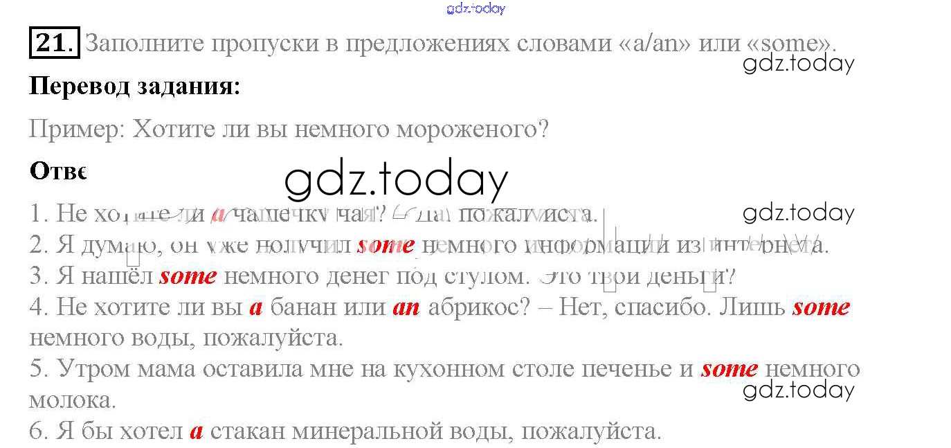 На страницах сайта gdz.today вы найдете учебный и вспомогательный материал, направленный на улучшения знаний школьной программы. ГДЗ - онлайн мир знаний Exercises Решение к Unit 1 21 Рабочей тетради по Английскому языку для 6 класса Биболетова, Денисенко Дрофа Enjoy English 2019