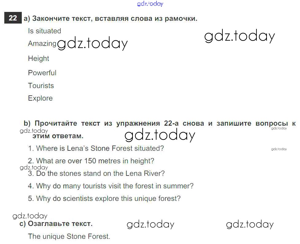 На страницах сайта gdz.today вы найдете учебный и вспомогательный материал, направленный на улучшения знаний школьной программы. ГДЗ - онлайн мир знаний Exercises Решение к Unit 1 22 Рабочей тетради по Английскому языку для 6 класса Биболетова, Денисенко Дрофа Enjoy English 2019