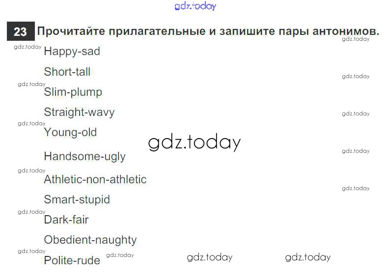 На страницах сайта gdz.today вы найдете учебный и вспомогательный материал, направленный на улучшения знаний школьной программы. ГДЗ - онлайн мир знаний Exercises Решение к Unit 1 23 Рабочей тетради по Английскому языку для 6 класса Биболетова, Денисенко Дрофа Enjoy English 2019