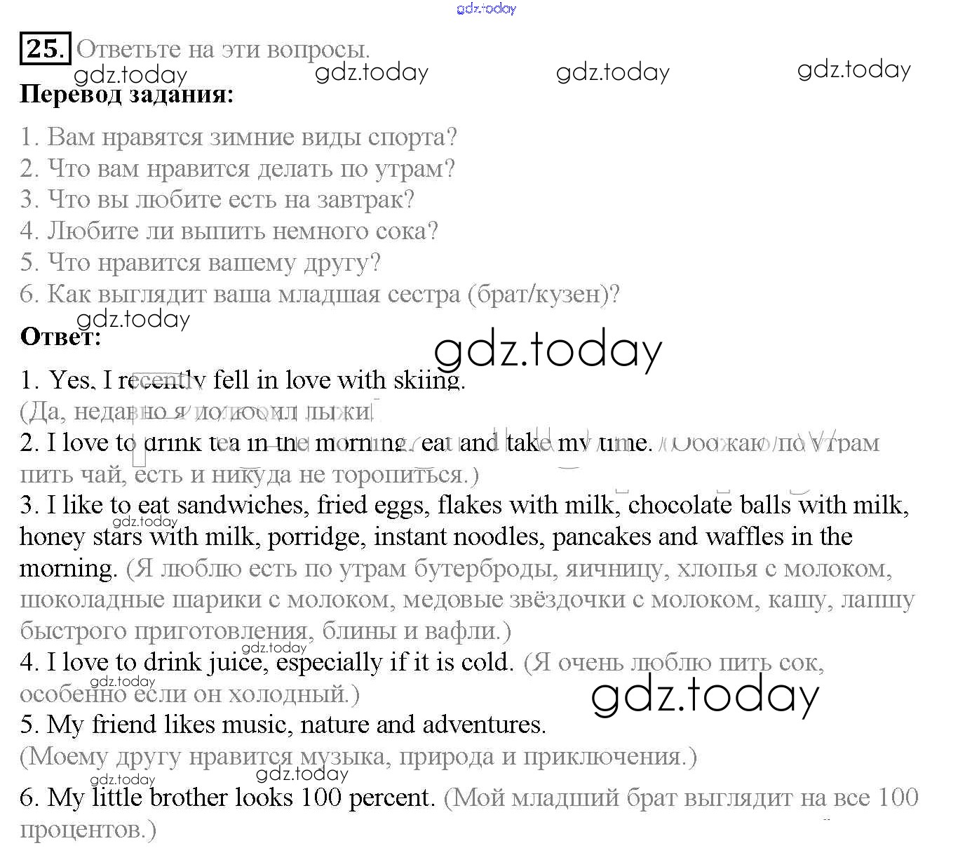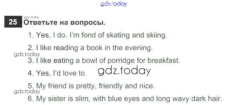 На страницах сайта gdz.today вы найдете учебный и вспомогательный материал, направленный на улучшения знаний школьной программы. ГДЗ - онлайн мир знаний Exercises Решение к Unit 1 25 Рабочей тетради по Английскому языку для 6 класса Биболетова, Денисенко Дрофа Enjoy English 2019