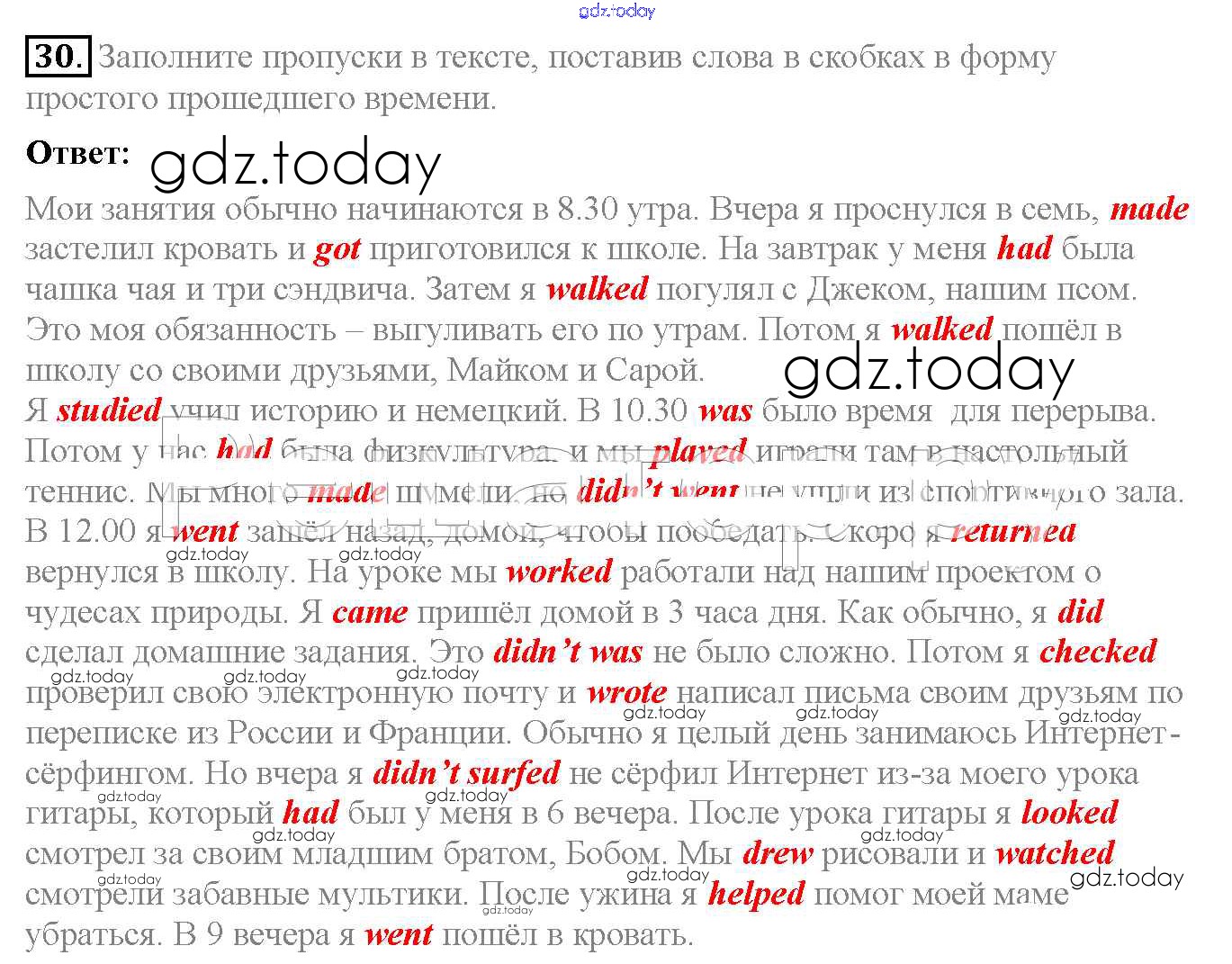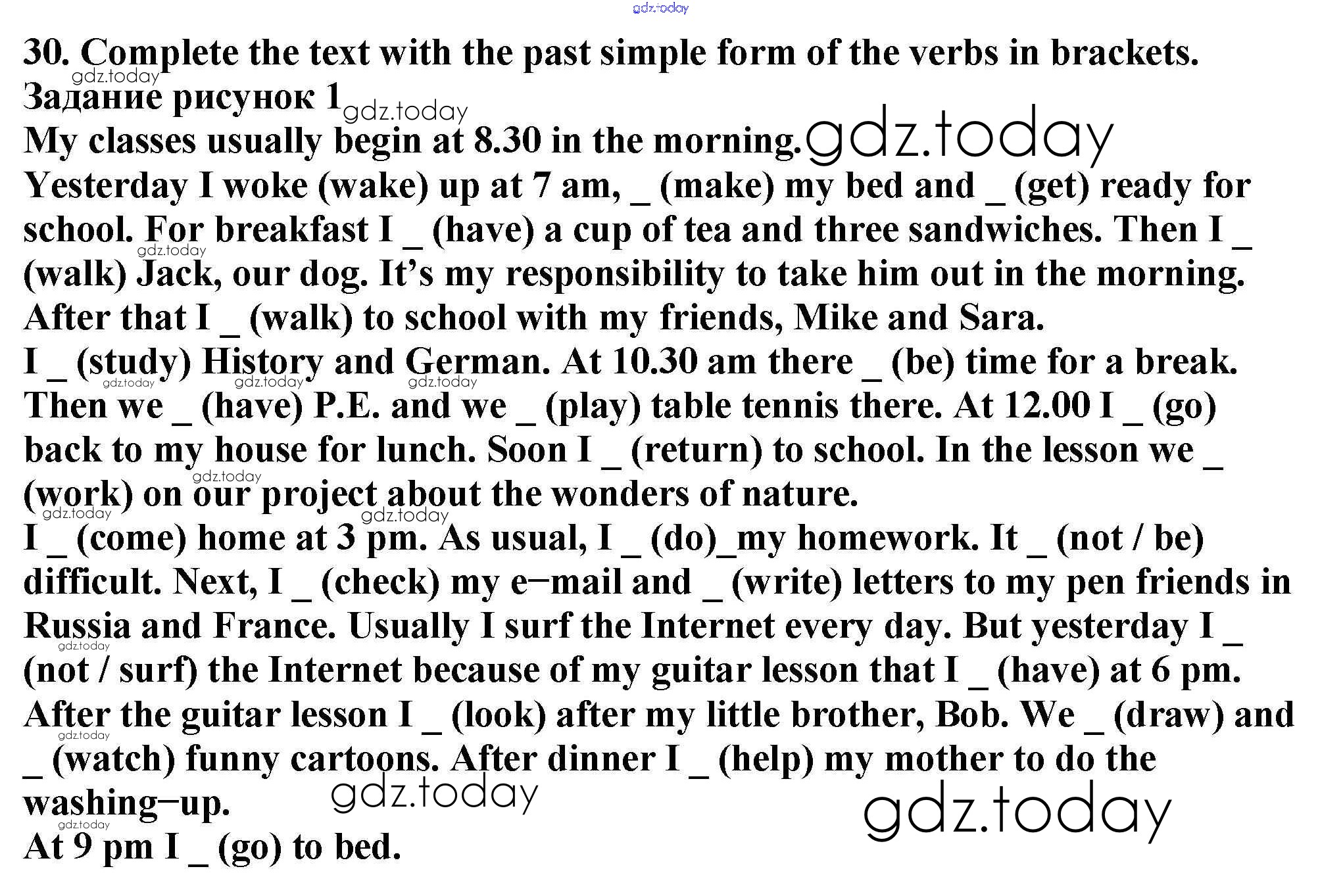 На страницах сайта gdz.today вы найдете учебный и вспомогательный материал, направленный на улучшения знаний школьной программы. ГДЗ - онлайн мир знаний Exercises Решение к Unit 1 30 Рабочей тетради по Английскому языку для 6 класса Биболетова, Денисенко Дрофа Enjoy English 2019