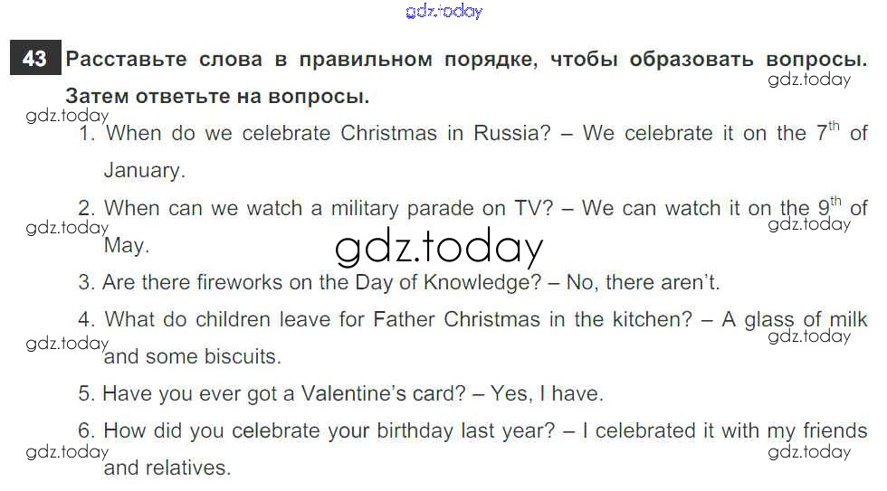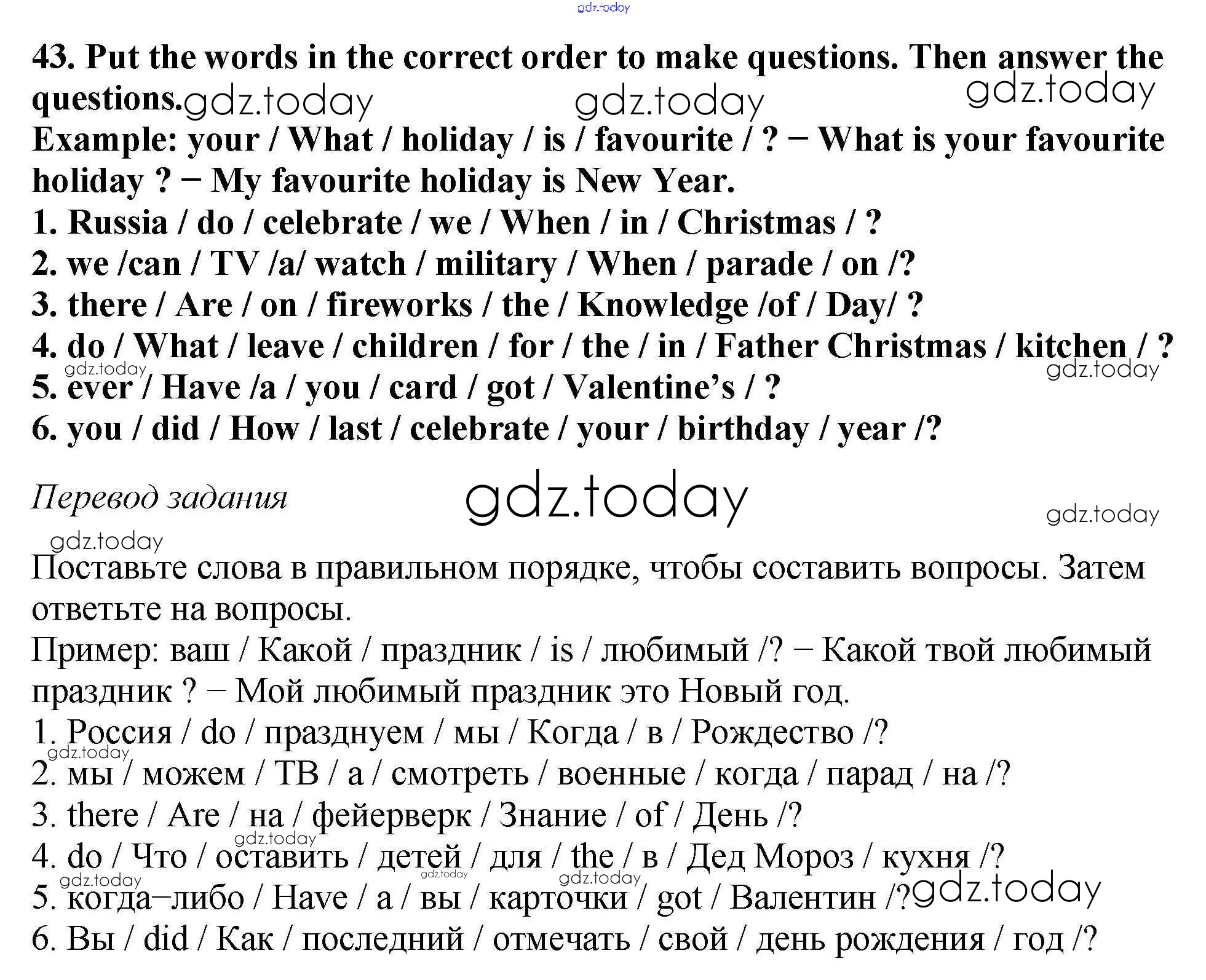 На страницах сайта gdz.today вы найдете учебный и вспомогательный материал, направленный на улучшения знаний школьной программы. ГДЗ - онлайн мир знаний Exercises Решение к Unit 1 43 Рабочей тетради по Английскому языку для 6 класса Биболетова, Денисенко Дрофа Enjoy English 2019