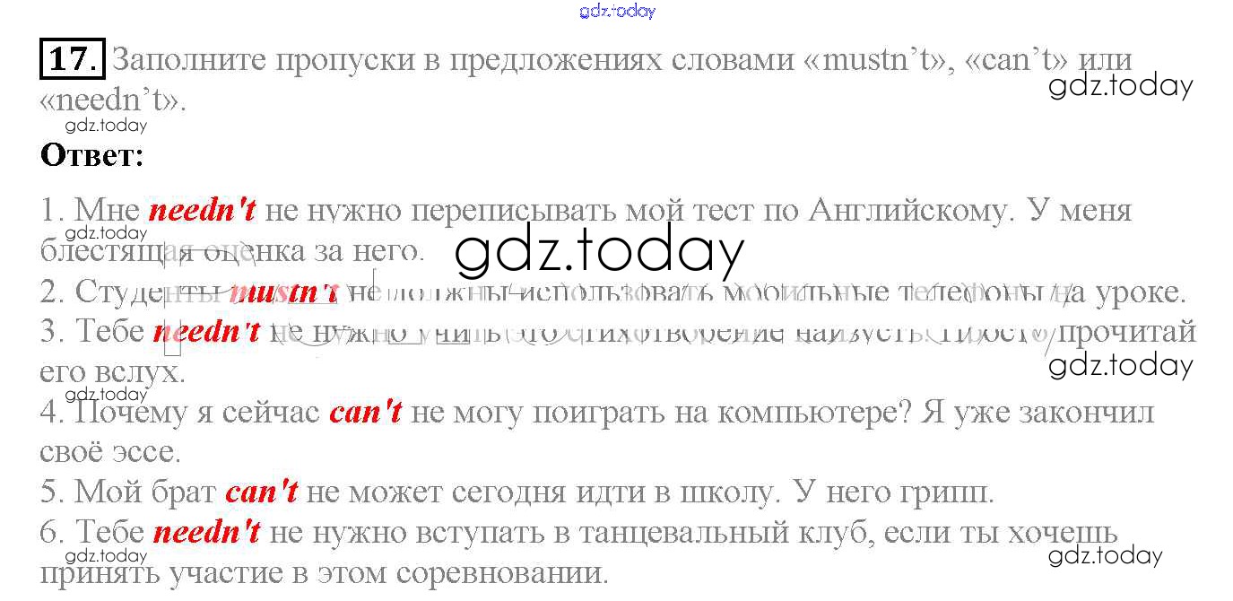 На страницах сайта gdz.today вы найдете учебный и вспомогательный материал, направленный на улучшения знаний школьной программы. ГДЗ - онлайн мир знаний Exercises Решение к Unit 2 17 Рабочей тетради по Английскому языку для 6 класса Биболетова, Денисенко Дрофа Enjoy English 2019