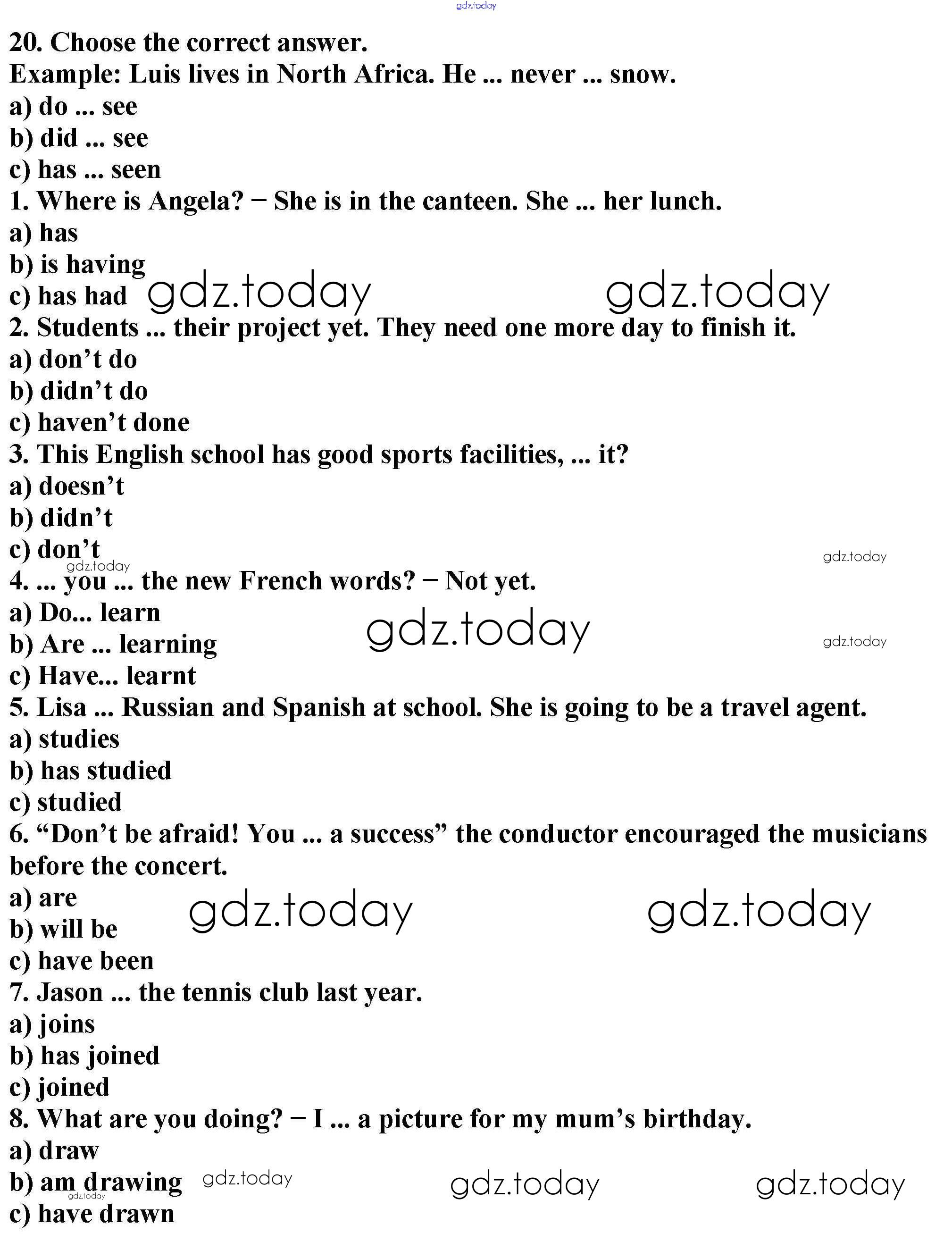 На страницах сайта gdz.today вы найдете учебный и вспомогательный материал, направленный на улучшения знаний школьной программы. ГДЗ - онлайн мир знаний Exercises Решение к Unit 2 20 Рабочей тетради по Английскому языку для 6 класса Биболетова, Денисенко Дрофа Enjoy English 2019