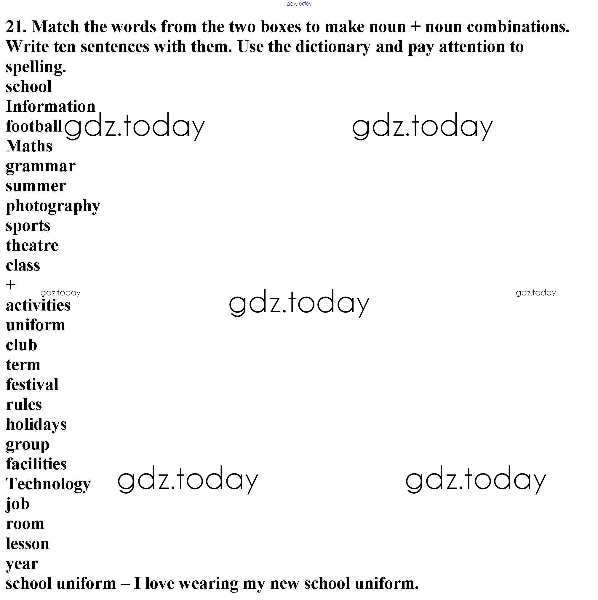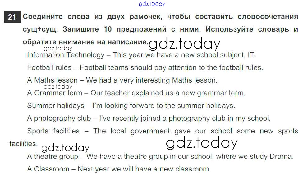 На страницах сайта gdz.today вы найдете учебный и вспомогательный материал, направленный на улучшения знаний школьной программы. ГДЗ - онлайн мир знаний Exercises Решение к Unit 2 21 Рабочей тетради по Английскому языку для 6 класса Биболетова, Денисенко Дрофа Enjoy English 2019