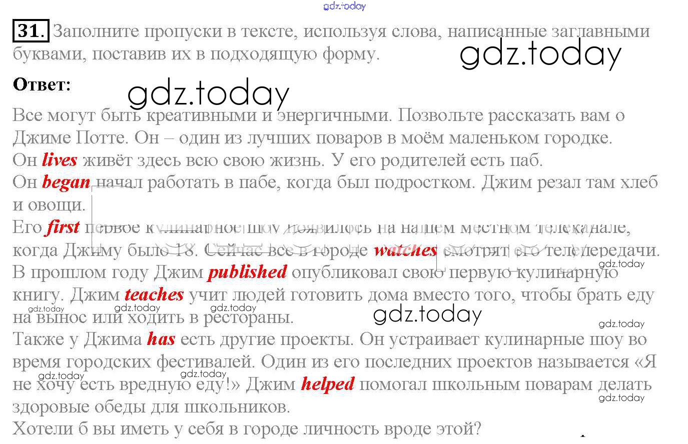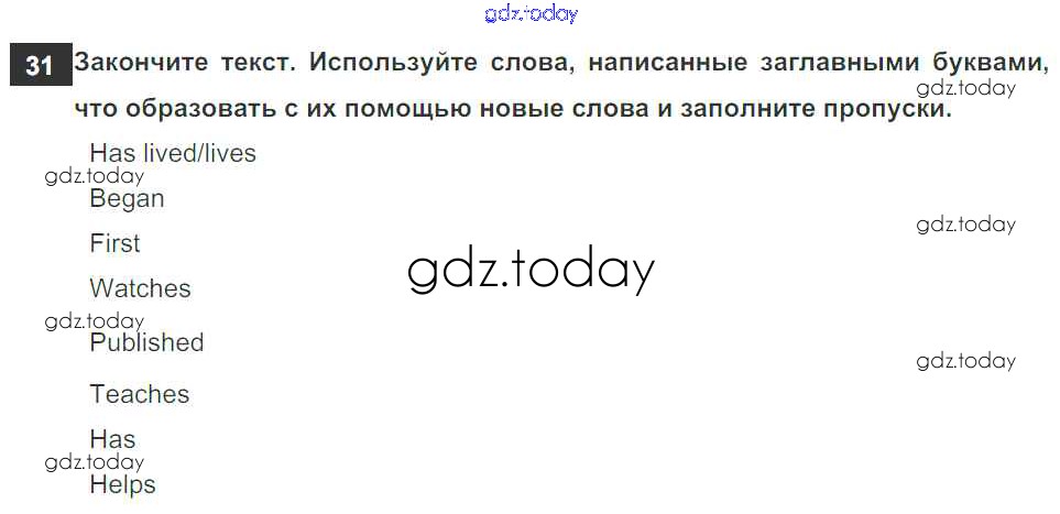 На страницах сайта gdz.today вы найдете учебный и вспомогательный материал, направленный на улучшения знаний школьной программы. ГДЗ - онлайн мир знаний Exercises Решение к Unit 2 31 Рабочей тетради по Английскому языку для 6 класса Биболетова, Денисенко Дрофа Enjoy English 2019