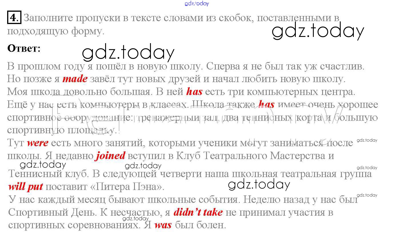 На страницах сайта gdz.today вы найдете учебный и вспомогательный материал, направленный на улучшения знаний школьной программы. ГДЗ - онлайн мир знаний Page 46 Test yourself 4 Рабочей тетради по Английскому языку для 6 класса Биболетова, Денисенко Дрофа Enjoy English 2019