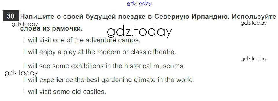 На страницах сайта gdz.today вы найдете учебный и вспомогательный материал, направленный на улучшения знаний школьной программы. ГДЗ - онлайн мир знаний Exercises Решение к Unit 3 30 Рабочей тетради по Английскому языку для 6 класса Биболетова, Денисенко Дрофа Enjoy English 2019